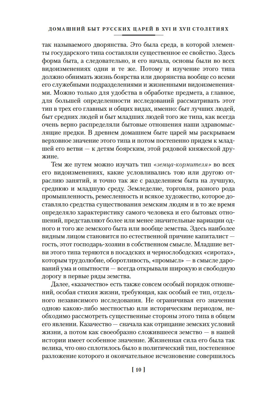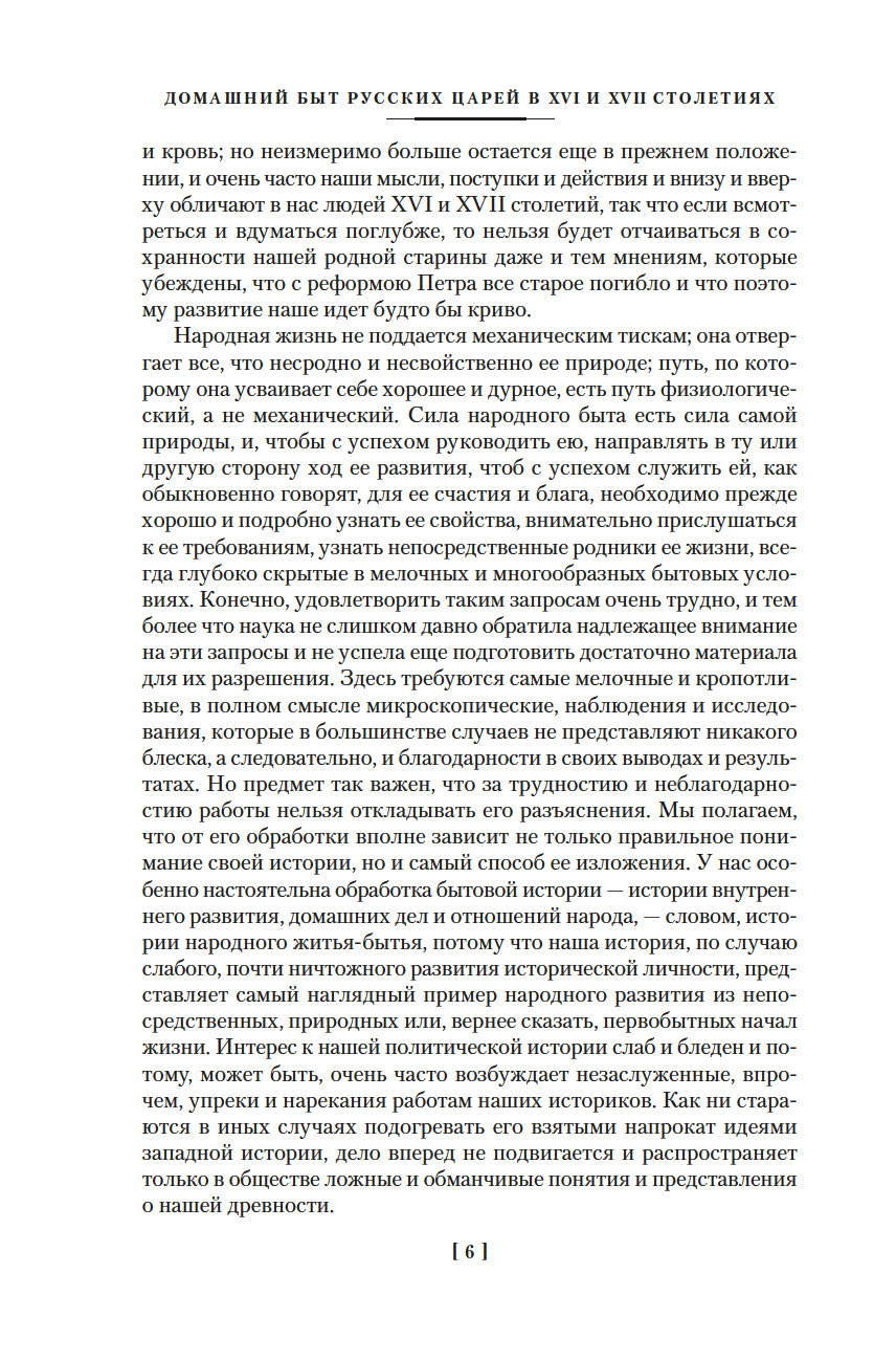 "Домашний быт русских царей в XVI и XVII столетиях" – по существу первый опыт изучения повседневной жизни царского двора, который помогает лучше понять своеобразие национальной культуры и государственности. Впервые введенные в исследовательский обиход источники позволили Забелину проследить формирование, а затем и угасание патриархального уклада русской жизни к началу Петровских реформ.