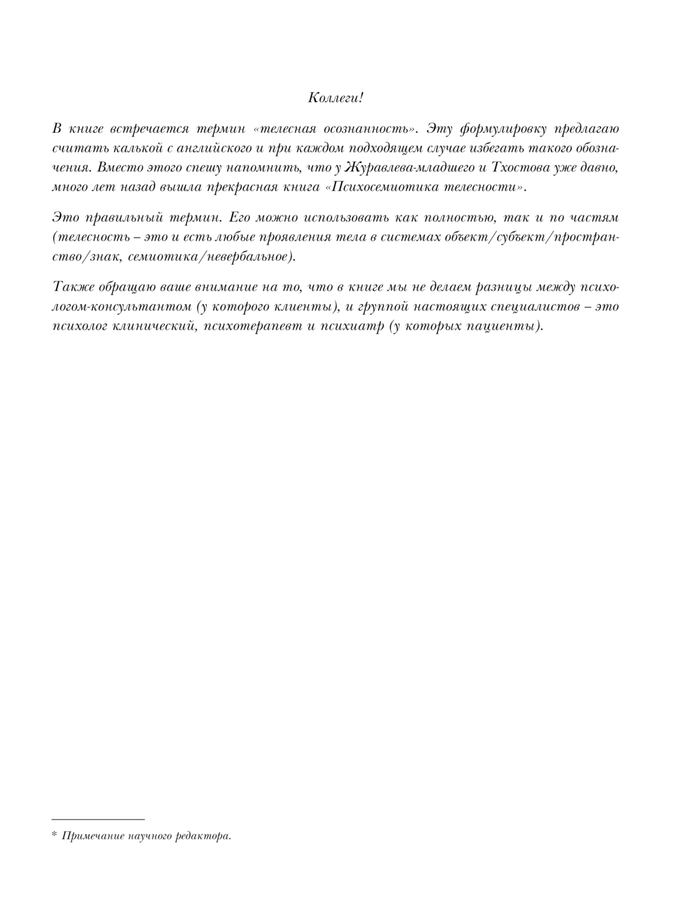 Книга затрагивает следующие аспекты работы с "телесностью":