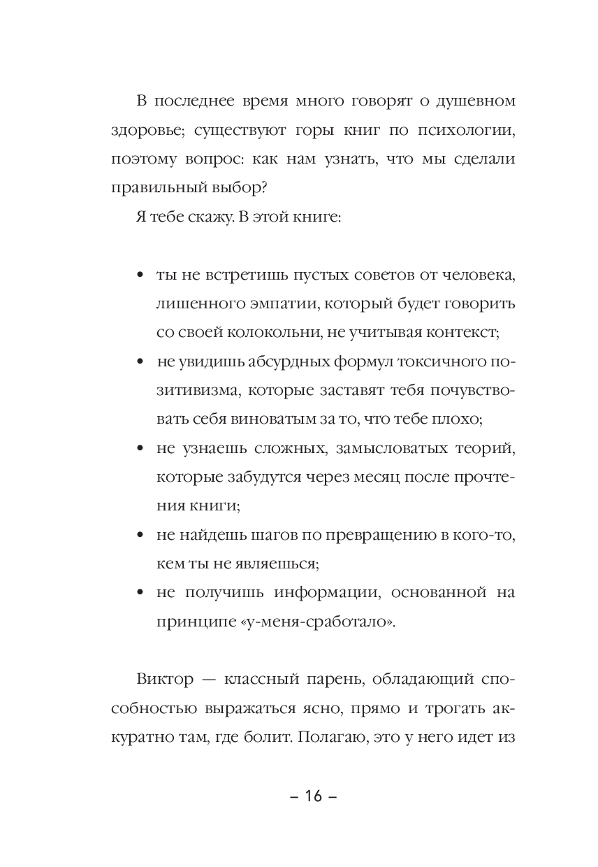 В своей книге психолог Виктор Амат по очереди развенчивает мифы наивного мышления и показывает, что мы можем извлекать пользу из каких угодно мыслей и (сюрприз!) даже негатив может привести нас к состоянию благополучия.