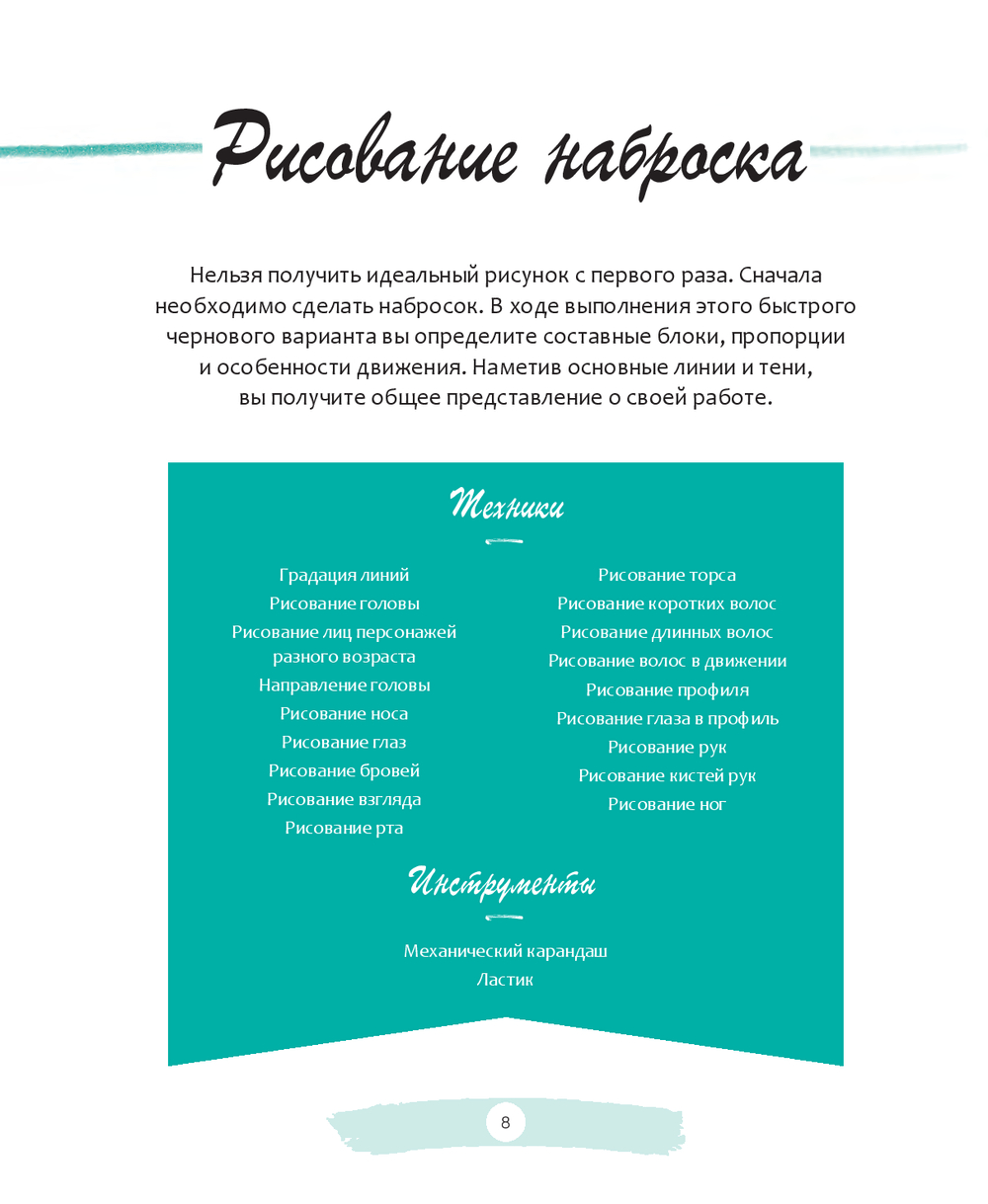 Примеры, разобранные в этой книге, помогают достичь двух важных целей: получить удовольствие от рисования и одновременно приобрести прочную базу. С каждым уроком вы будете изучать новые техники. Постепенно развивая свои навыки, вы почувствуете уверенность в себе и в итоге сможете рисовать как настоящий сёнэн-мангака!