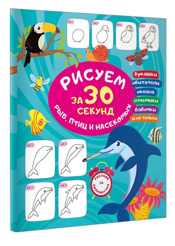 Как создать неповторимые картинки морских обитателей, птичек и букашек? Решение есть! Воспользуйтесь книгой "Рисуем за 30 секунд рыб, птиц и насекомых".