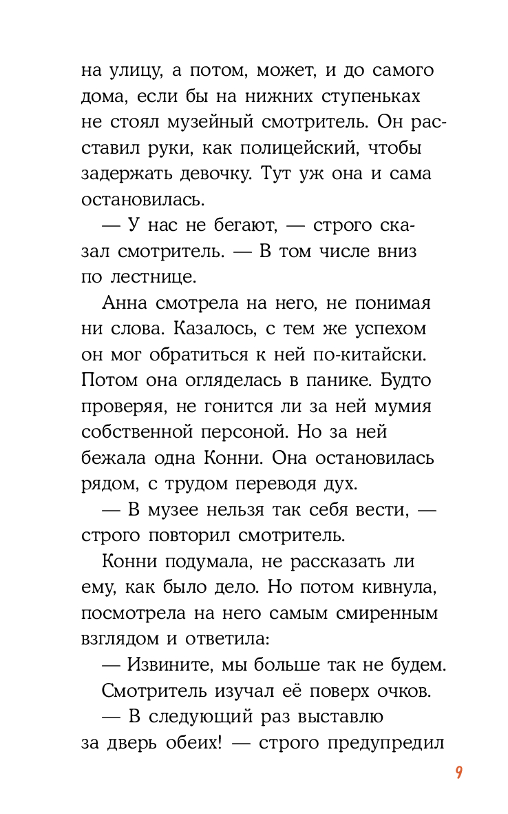 После победы в конкурсе класс Конни проведёт целую ночь в музее! Конни и Билли в восторге: ходить по тёмным залам мимо экспонатов с фонариком в руке, ночевать в пещере доисторического человека – что может быть круче? Вот только Анна не рада: а вдруг по ночам в музее бродят мумии?! Как только ночью музее гаснет свет, действительно становится немного жутковато. Подруги, услышав какие-то странные звуки, решают разобраться, в чем же дело. Неужели Анна не зря боялась?