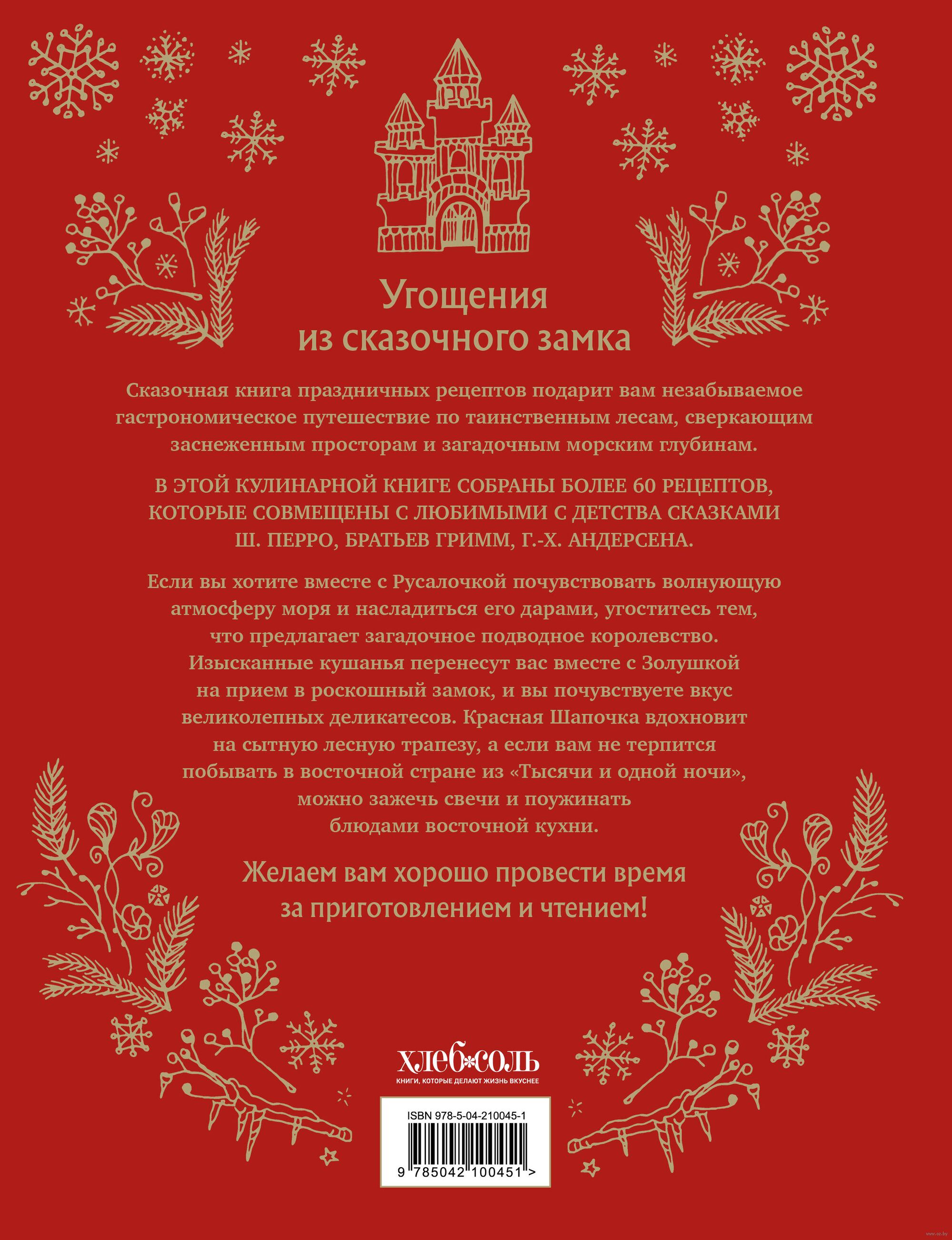 Новое оформление изумительной книги под Новый год и Рождество! Подарок для тех, кто любит проводить праздники в кругу своей семьи! Под сказки Ш.Перро, бр.Гримм, Г.Х.Андерсена в книге предложены 58 рецептов праздничных закусок, основных блюд и десертов разной степени сложности, сопровождающиеся изумительными аппетитными фотографиями. Дивные рисунки создают сказочное настроение, и прекрасная книга становится членом семьи на весь год.
