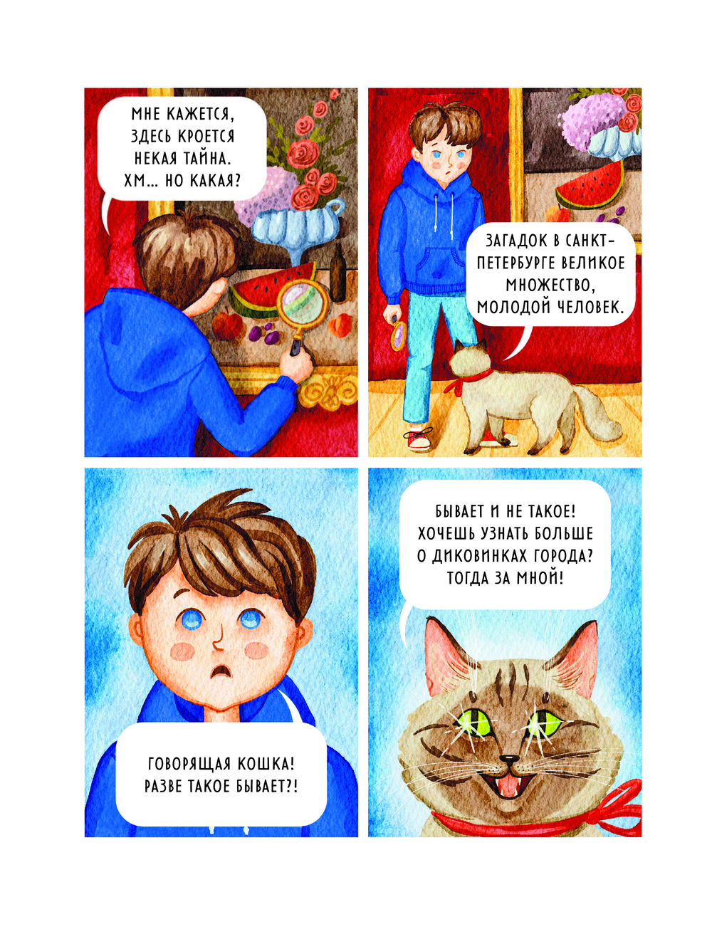 Вас ждут встречи с оживающим по ночам Медным всадником, с призраком Петра I, бродящим по Петропавловской крепости, с водяным в реке Фонтанке и обитателями Эрмитажа. Вы узнаете о сокровищах, спрятанных в Адмиралтействе, и о многих других тайнах и загадках города на Неве.
