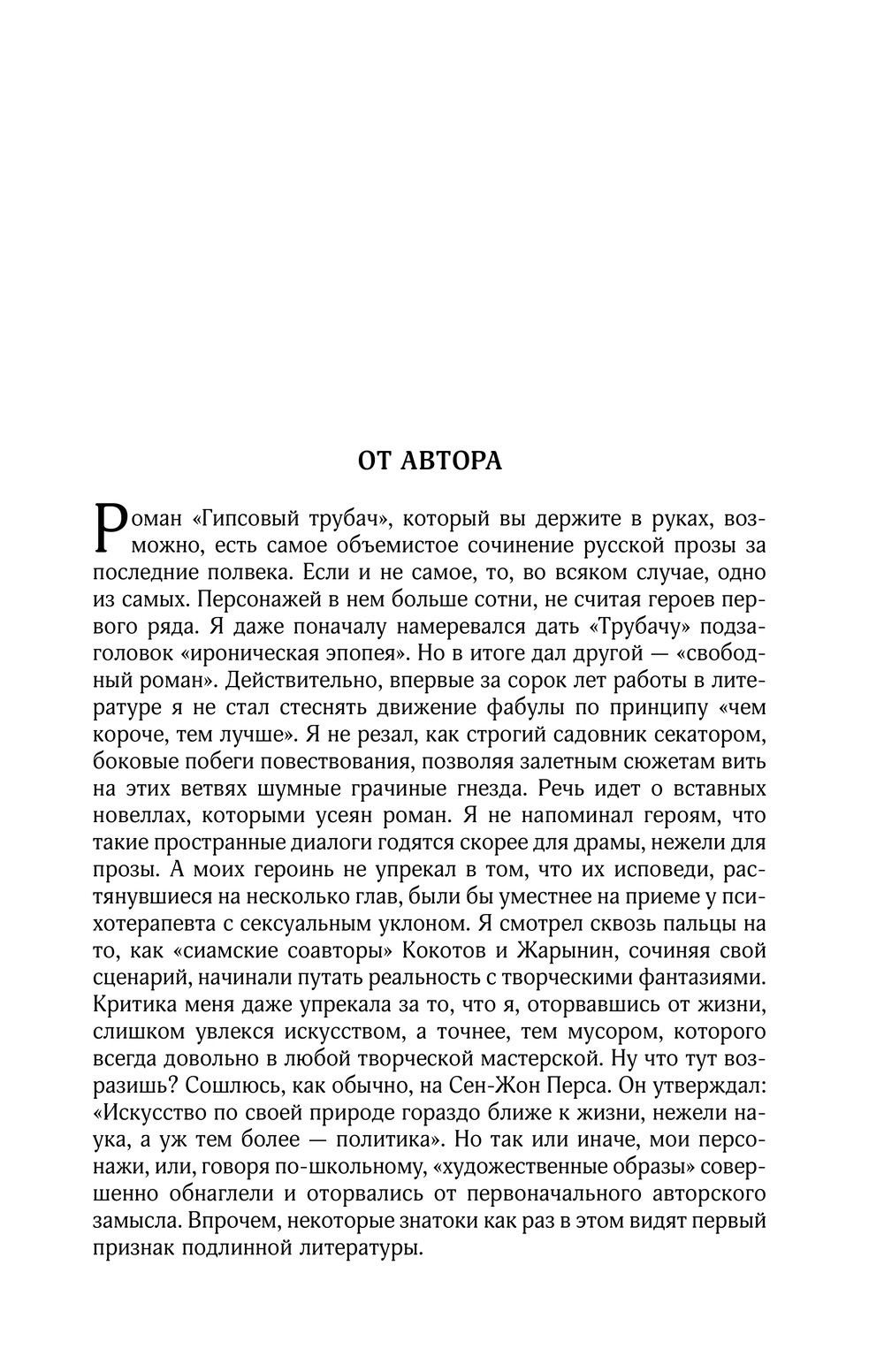 Знаменитый роман мастера "гротескного реализма" Юрия Полякова "Гипсовый трубач" не имеет аналогов в современной отечественной словесности ни по занимательности, ни по жанровому своеобразию, ни по охвату тем. Эта "ироническая эпопея", как назвали ее критики, соединяет в себе черты детектива, любовной истории, психологического романа, социальной сатиры, а изобилием блестящих вставных новелл напоминает "Декамерон". Как всегда, автор увлекает читателя виртуозно закрученным сюжетом, покоряет яркими и сложными характерами героев, восхищает отточенным ироническим стилем, поражает неожиданными метафорами и афоризмами, волнует утонченной эротикой.