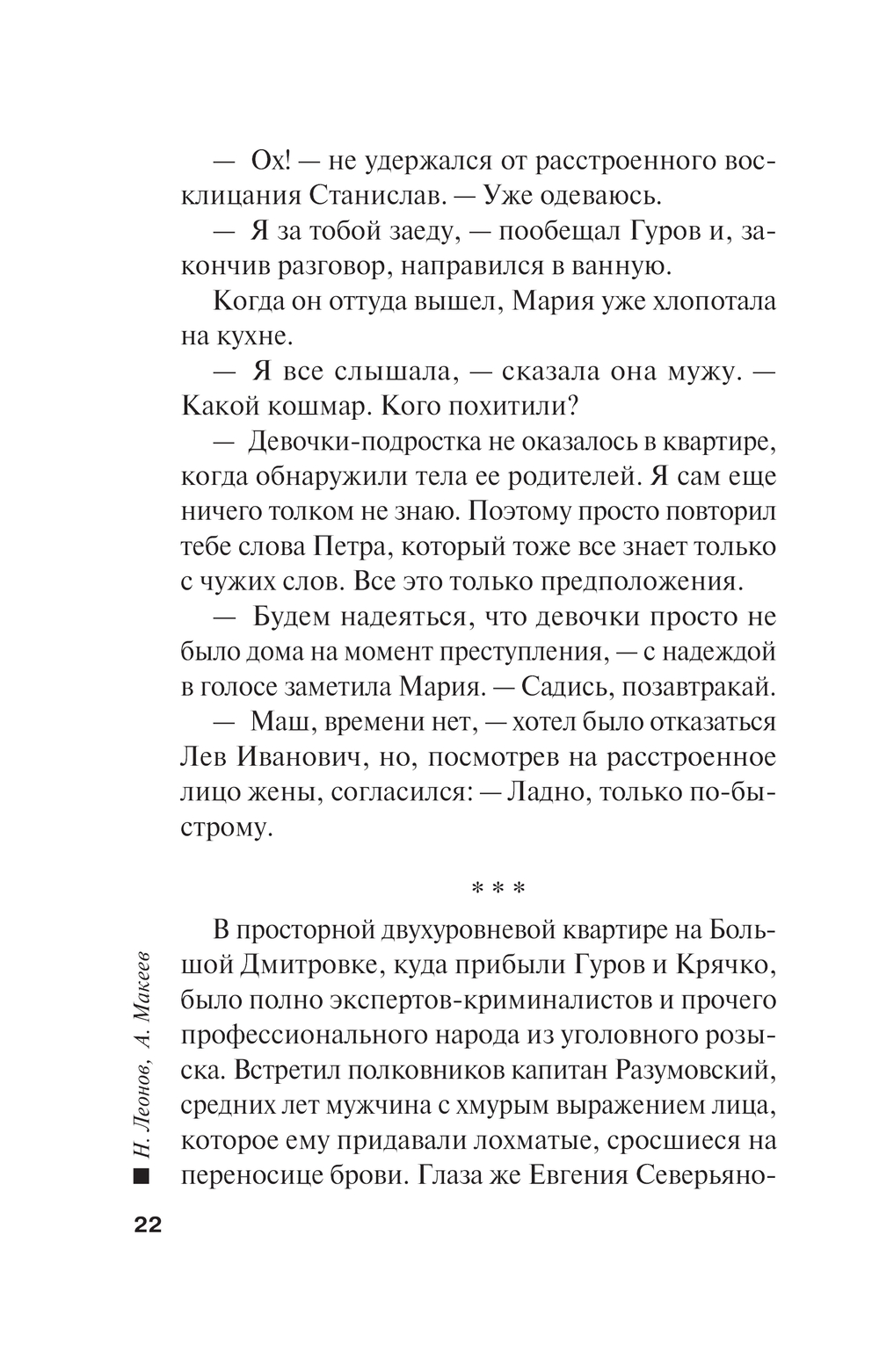 "Помогите, он их всех убил!" – такое необычное сообщение пришло на телефон воспитательницы детского дома от ее бывшей подопечной Тони. Несколько лет назад девочку удочерила супружеская пара Шишковских. Их сын Елизар незадолго до этого умер при странных обстоятельствах... Сообщение оказалось правдой – супруги были жестоко убиты у себя дома именно в этот день. Тоня бесследно исчезла. Полковники МВД Гуров и Крячко с камеры видеонаблюдения получают изображение подозрительного парня, который за несколько минут до убийства входил в подъезд дома, где проживали погибшие. Как он выходил и была ли с ним девочка, выяснить не удалось. К удивлению сыщиков, одна из свидетельниц опознала в незнакомце... давно умершего Елизара...
