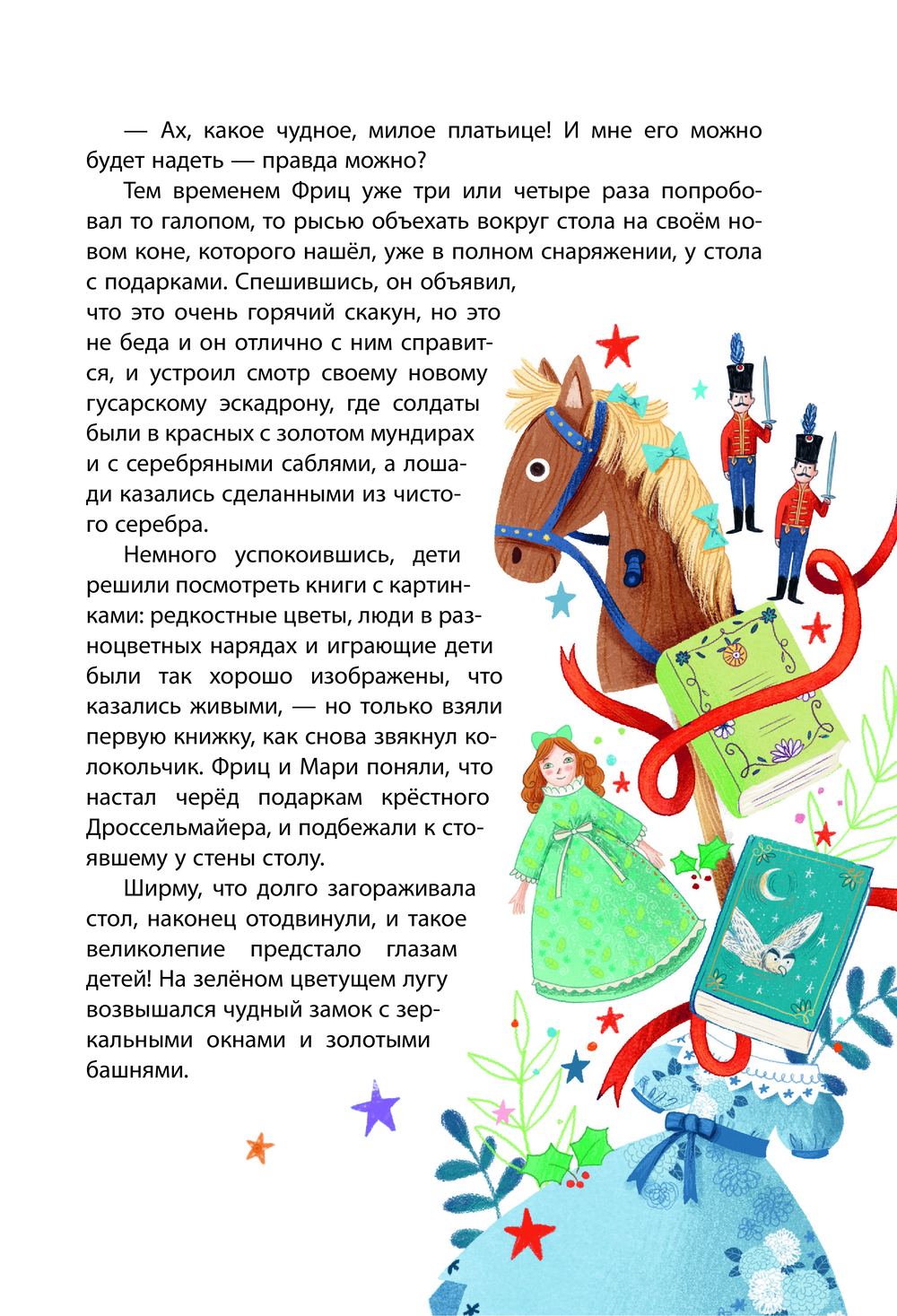 "Щелкунчик и Мышиный король" – одна из самых новогодних сказок, интересная мальчикам и девочкам, любимая взрослыми и детьми. Действие сказки разворачивается волшебными снежными вечерами, когда девочка Мари получает диковинный подарок, защищается от Мышиного короля и попадает в необыкновенное сладкое королевство. Романтические образы, встречающиеся на каждом развороте, пробуждают фантазию ребёнка, а переживания героев способствуют эмоциональному развитию.