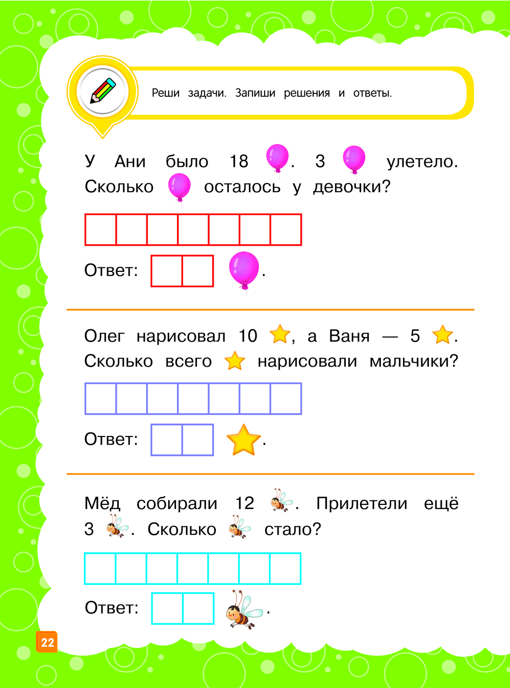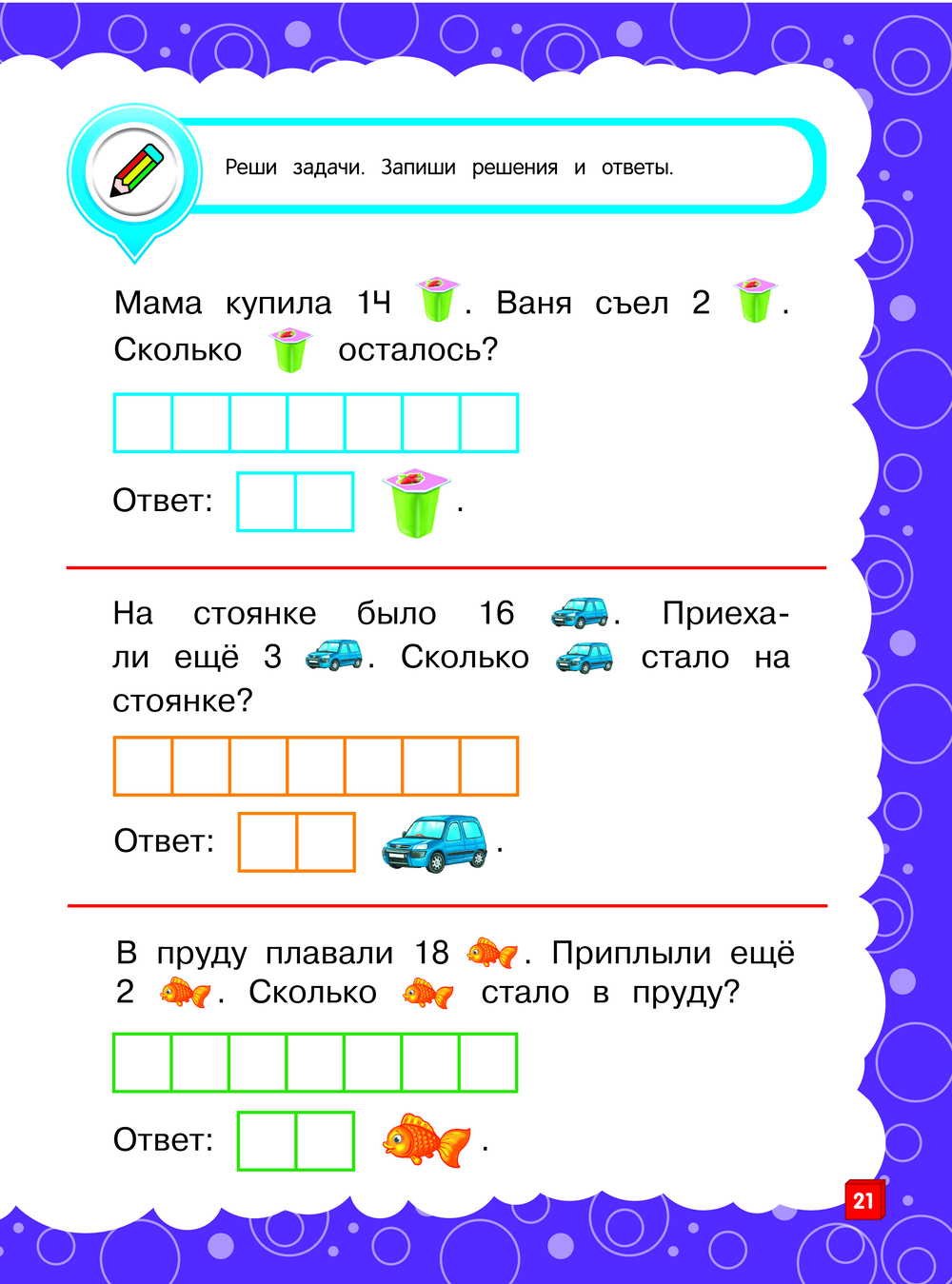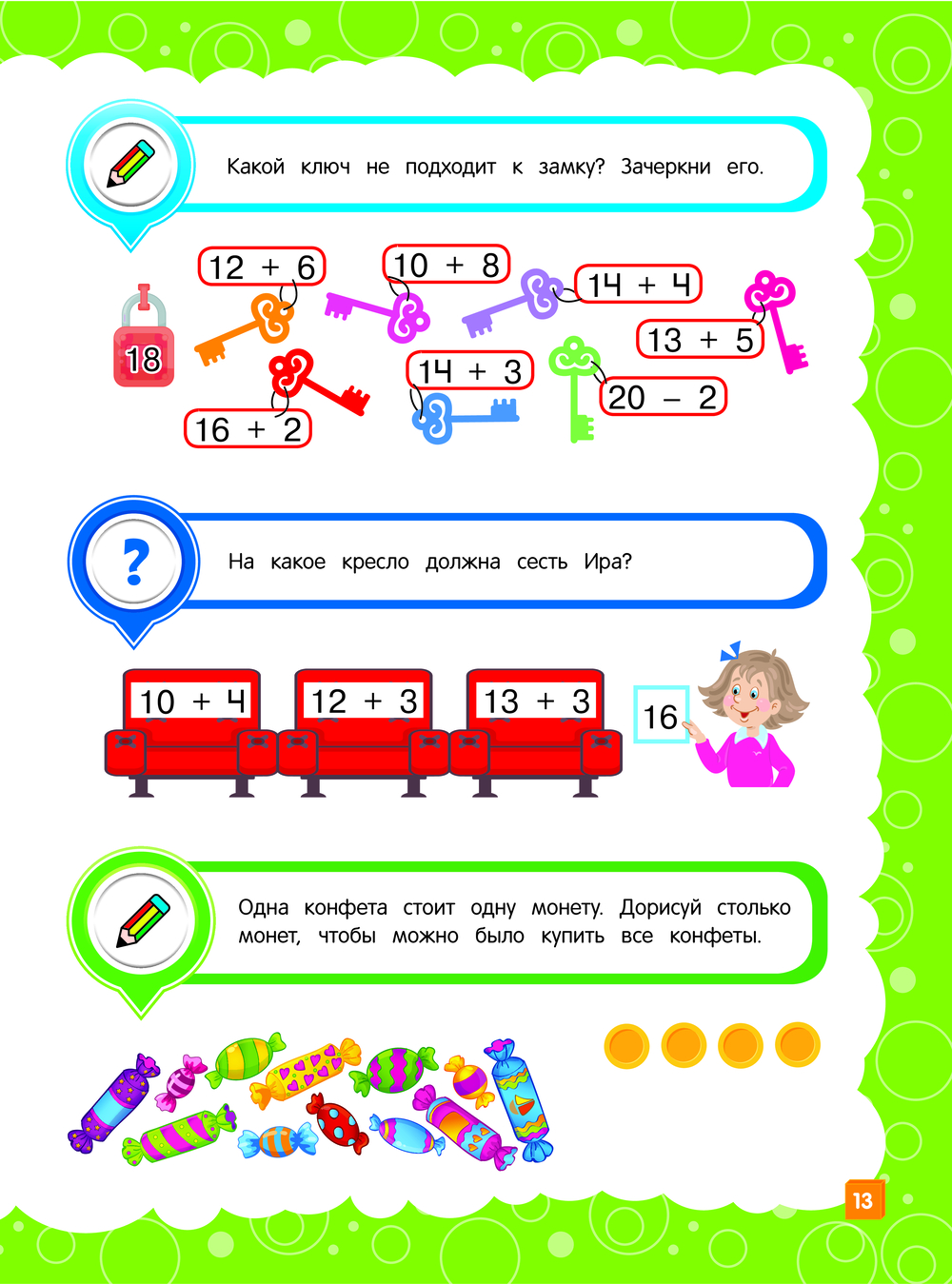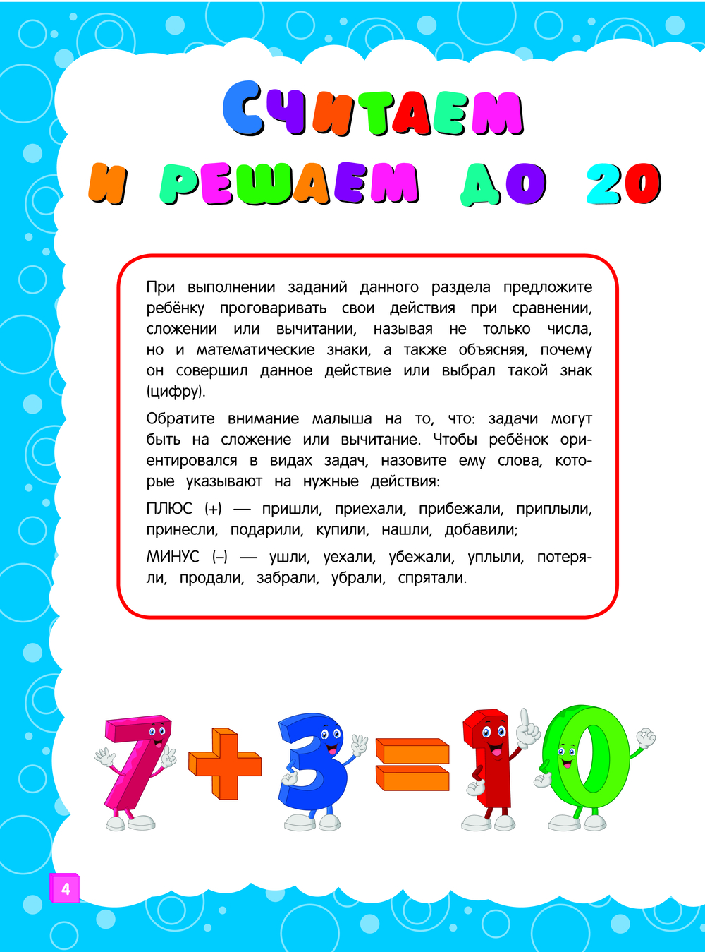 Основная цель пособия – дать ребёнку необходимые знания по базовым темам. Тематика включённых в книгу разделов соответствует ФГОС. Выполняя увлекательные задания, ребенок освоит счет до 20, закрепит навыки решения примеров и задач, чтения и понимания смысла прочитанного; потренируется озаглавливать текст, отвечать на вопросы, пересказывать; будет ориентироваться на листе бумаги; сможет расширить словарный запас и кругозор, развить внимание, память и мышление.