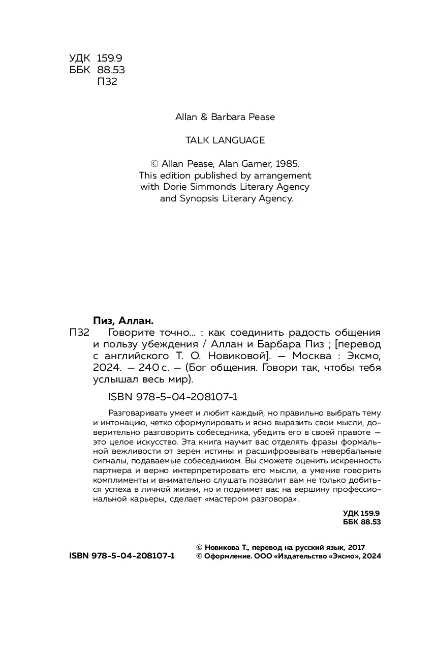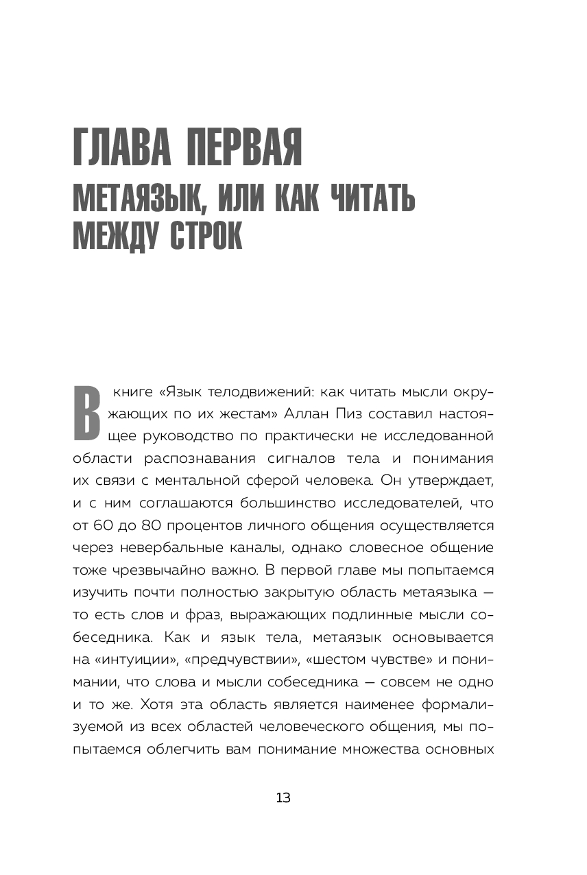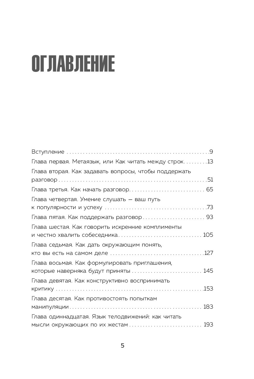 Эта книга написана международными экспертами по "технологиям общения", она научит вас отделять фразы формальной вежливости от зерен истины и расшифровывать невербальные сигналы. Вы сможете оценить искренность партнера и верно интерпретировать его мысли, а умение говорить комплименты и внимательно слушать позволит вам не только добиться успеха в личной жизни, но и поднимет вас на вершину профессиональной карьеры, сделает "мастером разговора".