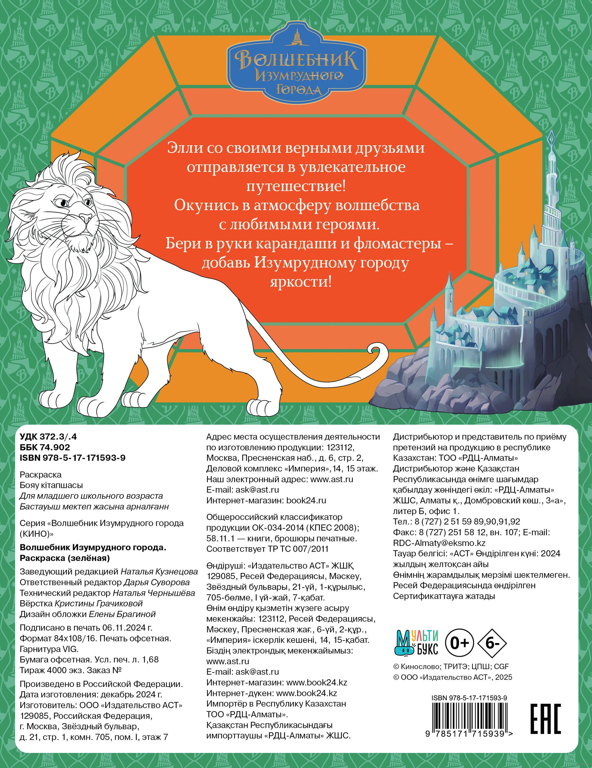 Волшебник Изумрудного города. Раскраска (зелёная)