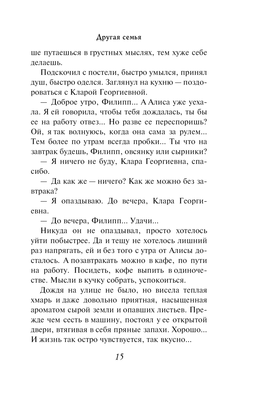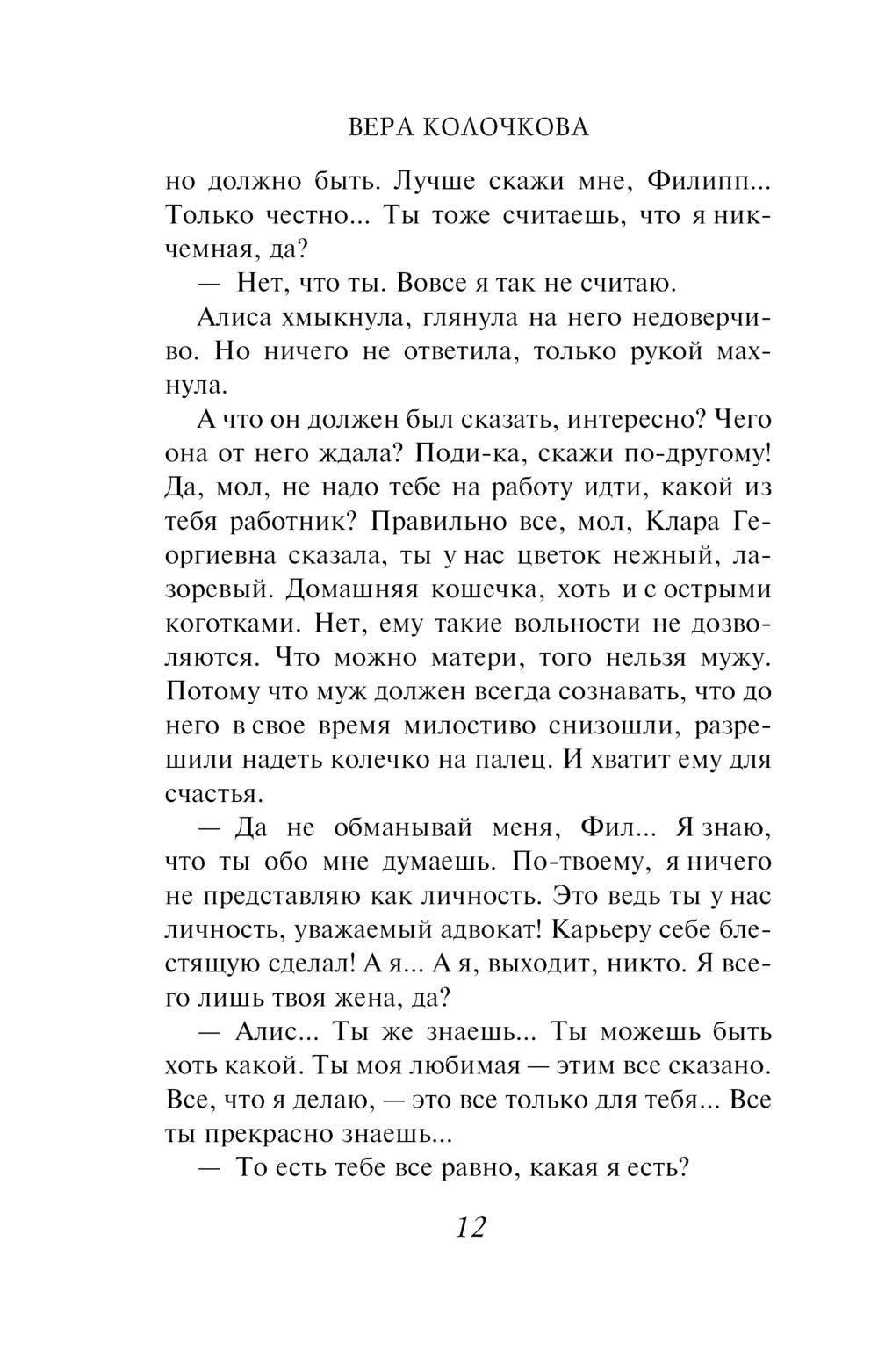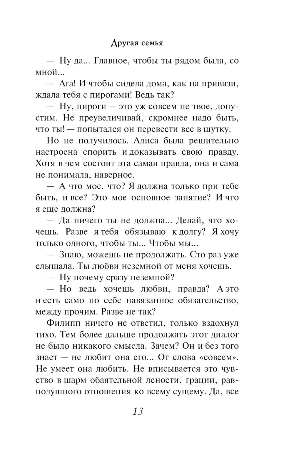 Филипп любил Алису с первого дня их знакомства в институте и долго добивался ее руки. Но этот брак не принес никому счастья, ведь Алиса не испытывала взаимных чувств, а лишь позволяла любить себя.