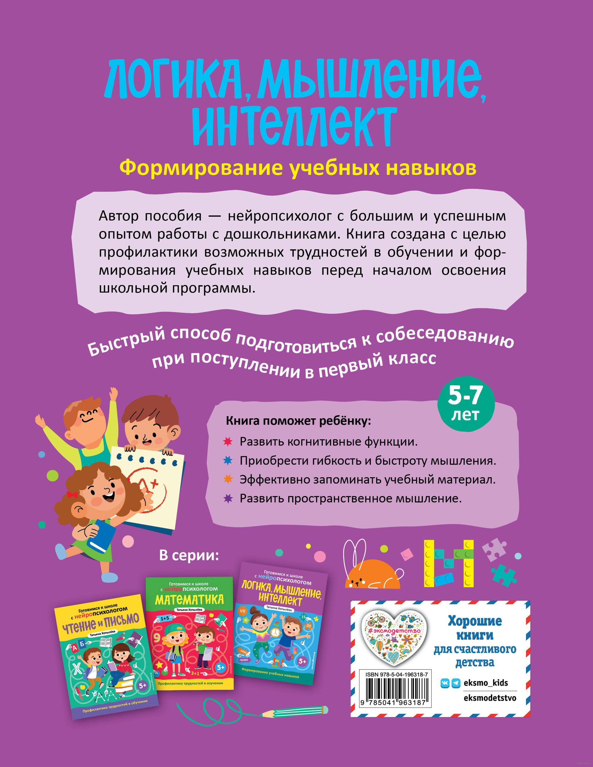 Это не просто учебное пособие, а комплексный инструмент, который поможет каждому ребёнку, начиная с 5 лет, развить гибкость и быстроту мышления, формируя при этом позитивное отношение к учёбе. Автор уделяет особое внимание методам профилактики и преодоления нейропсихологических проблем, которые могут затруднять обучение. Ребёнок потренируется описывать расположение предметов в пространстве, научится считать до 20, сравнивать предметы по их признакам, включая цвет, размер, количество и другие свойства, выучит римские цифры, получит первые уроки практической геометрии и легко подготовится к собеседованию для поступления в первый класс. Автор книги, опытный нейропсихолог, даёт практические рекомендации для родителей и педагогов, как помочь дошкольнику избежать стресса и перегрузок в освоении учебного материала любой сложности.