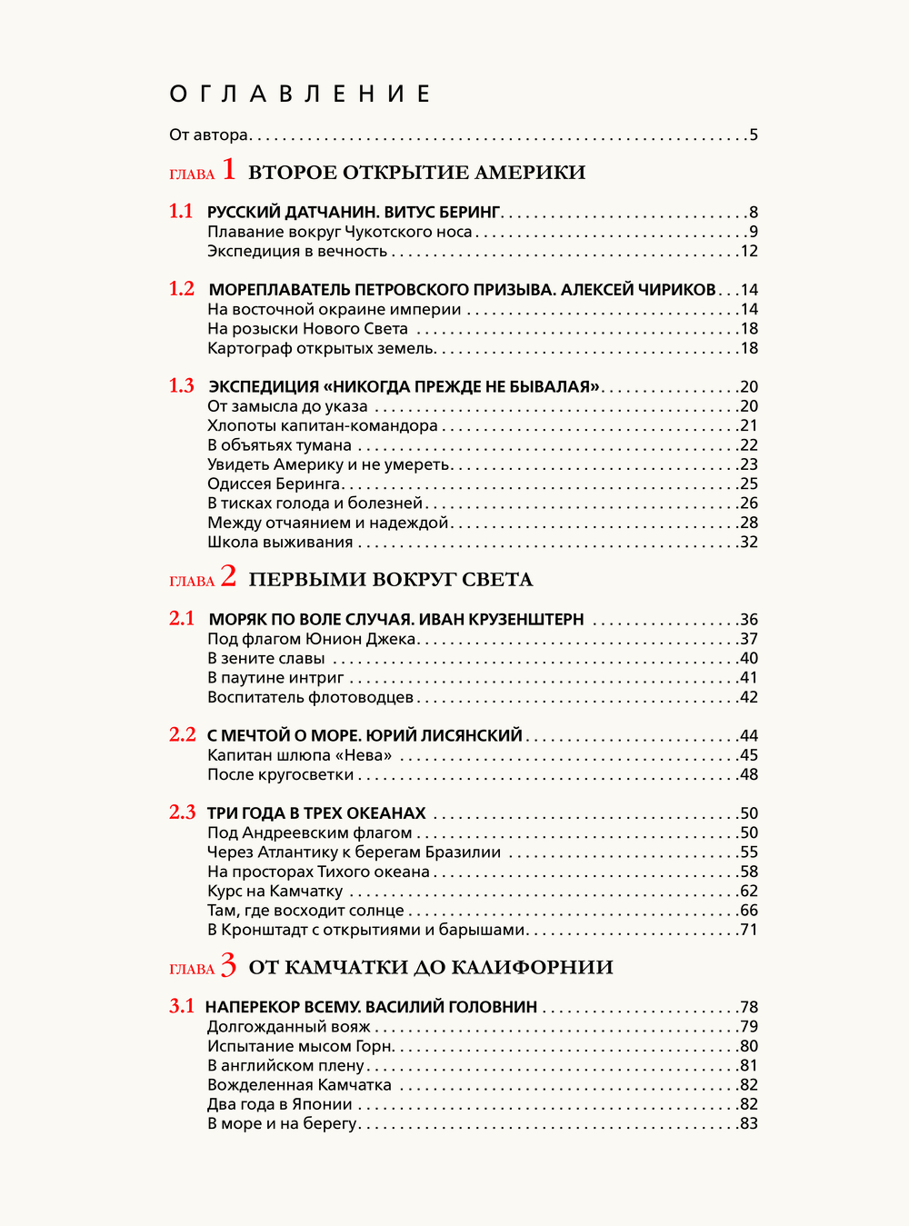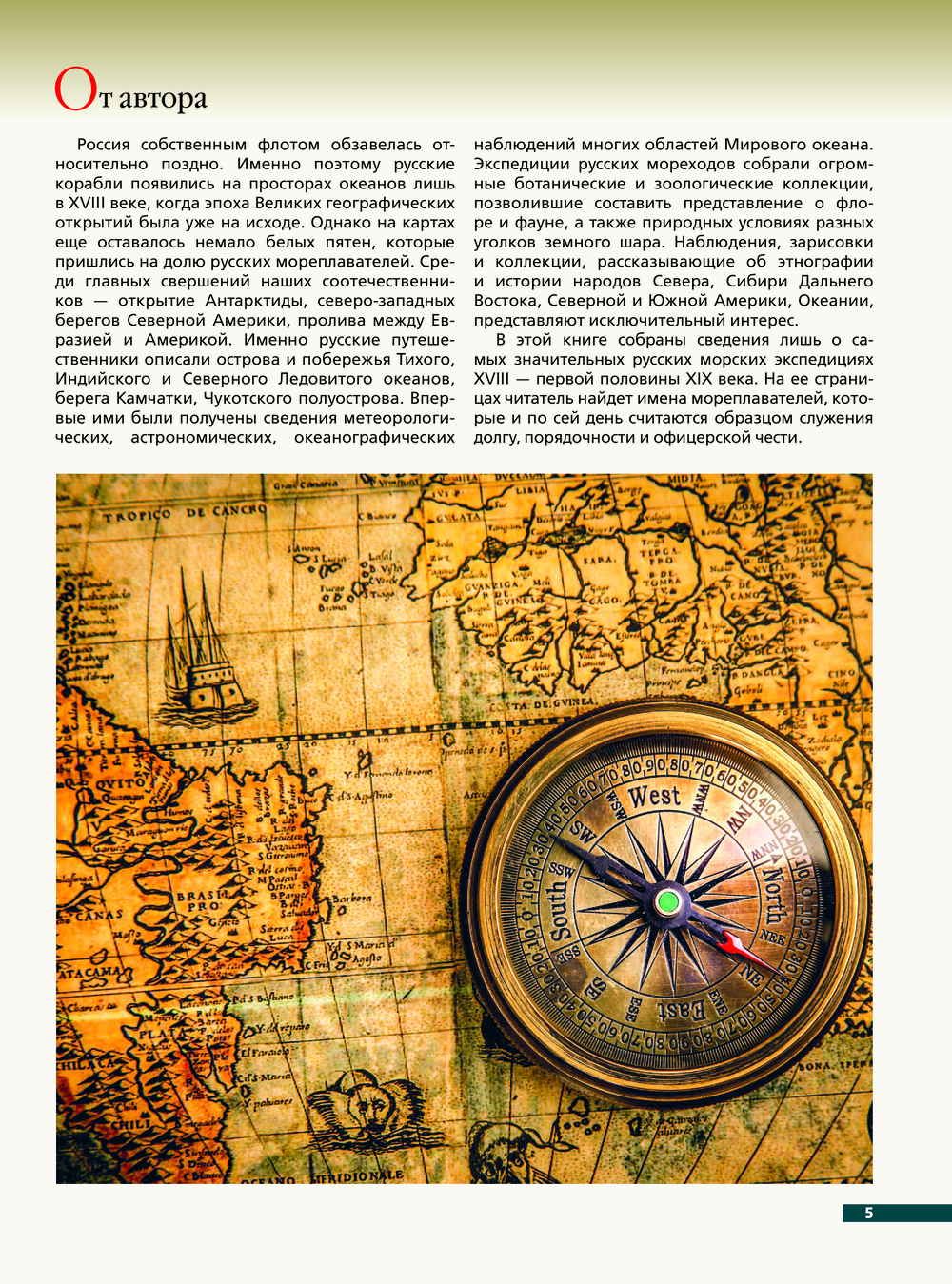 Русским мореплавателям довелось внести достойный вклад в расширение знаний о нашей планете. На их счету – открытие Антарктиды, северо-западных берегов Северной Америки, пролива, разделяющего Америку и Евразию, исследование Командорских, Алеутских, Курильских островов, Новой Земли и побережья Северного Ледовитого океана, описание Маркизских, Марианских, Гавайских островов. В этих плаваниях принимали участие лучшие морские офицеры, получавшие бесценный опыт кораблевождения на океанских просторах. На судах, участвовавших в кругосветных вояжах, обычно не практиковались телесные наказания, но при этом поддерживалась образцовая дисциплина. Дальние морские экспедиции оказали также огромное влияние на становление отечественного флота.