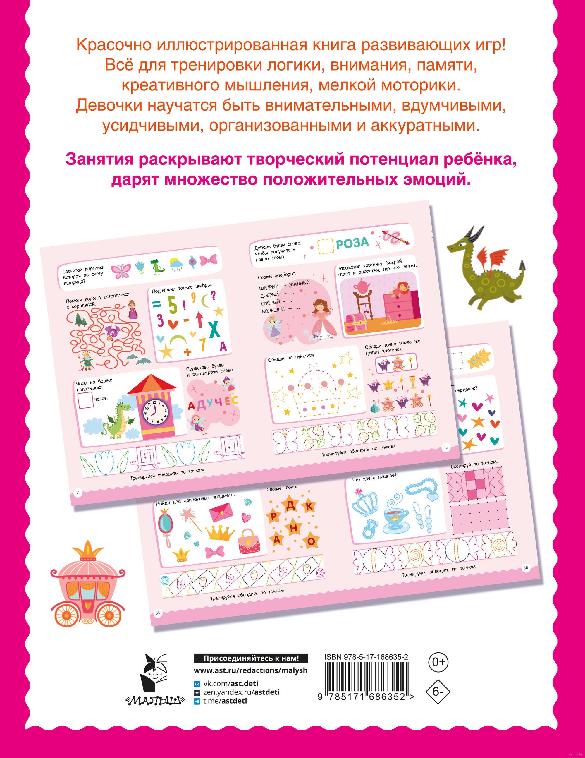 "500 увлекательных заданий для девочек. 5-7 лет" – много-много головоломок, игр с буквами и словами, сравнилок, находилок, дорисовашек, ребусов, бродилок и лабиринтов, загадок, задачек на логику и сообразительность. Предложите компании девчонок угадывать зашифрованные слова, сравнивать картинки в поисках отличий, считать, размышлять, находить закономерности, проходить лабиринты – такие интеллектуальные занятия расширяют кругозор и словарный запас, формируют графические навыки, развивают мышление, память, внимание, наблюдательность, смекалку и творческие способности. Ребёнок откроет первую страницу – и уже не сможет оторваться!