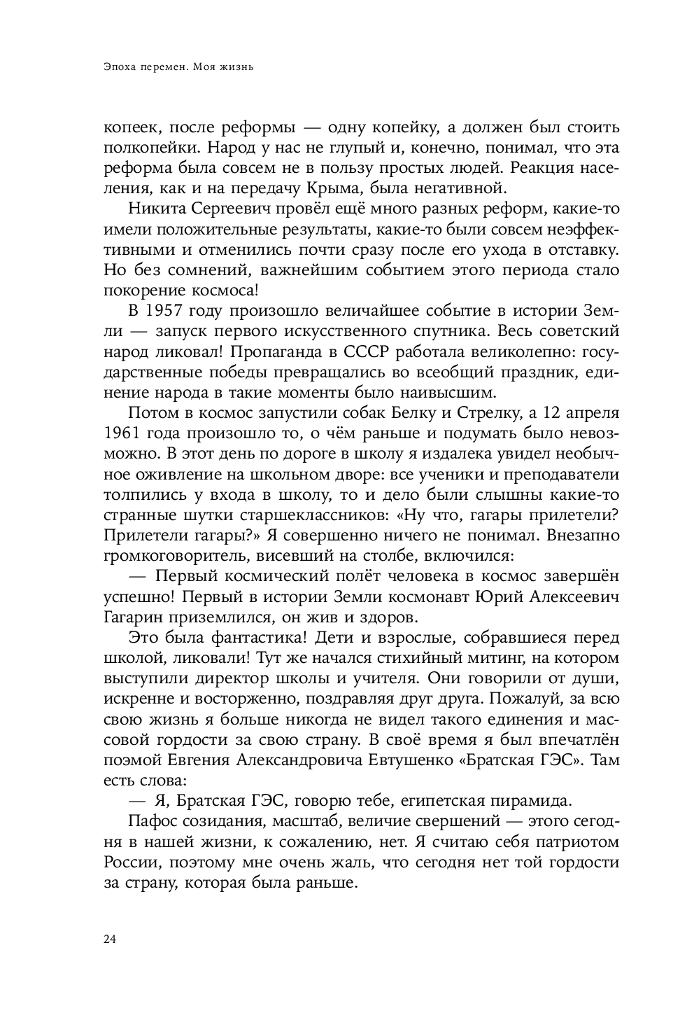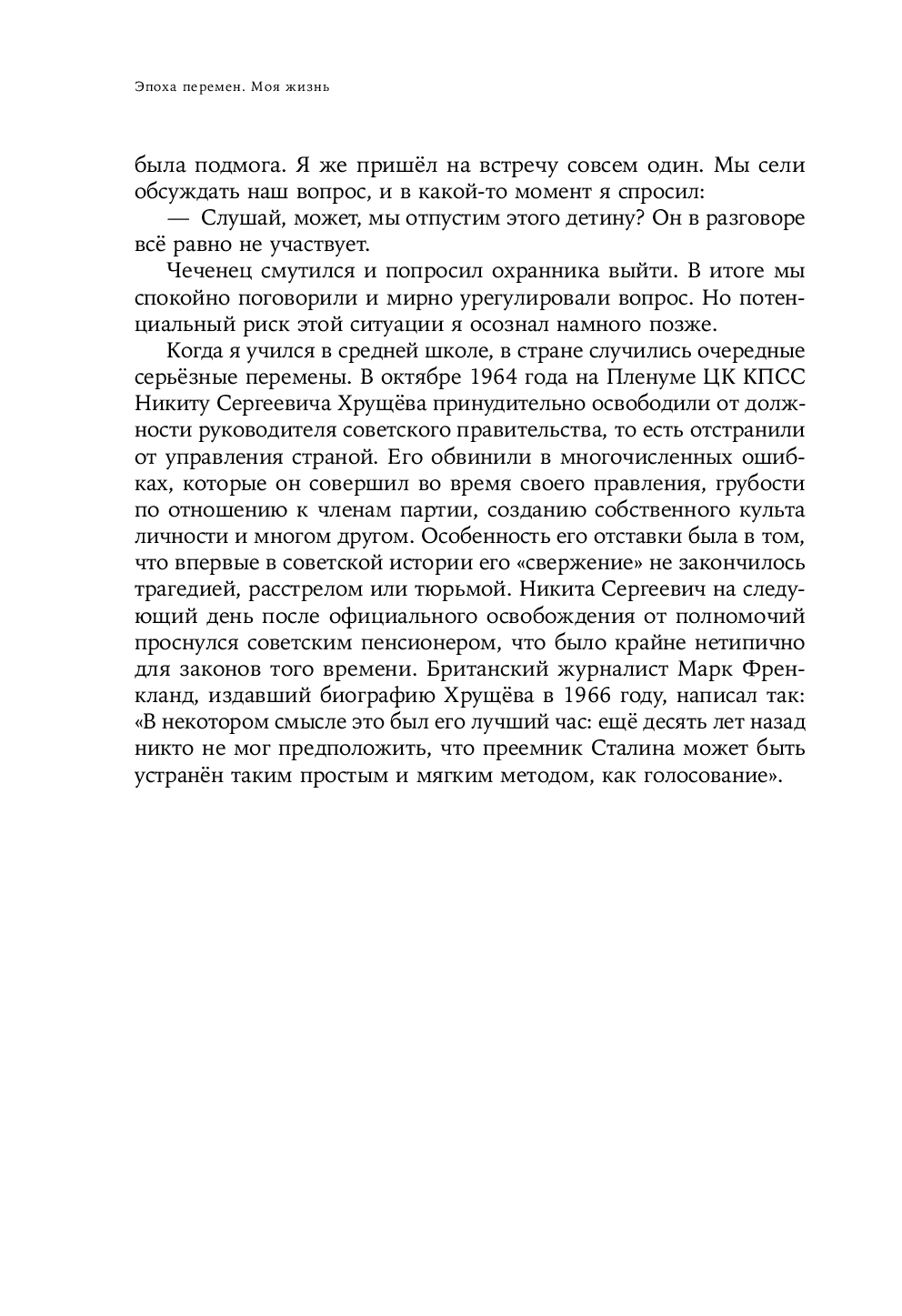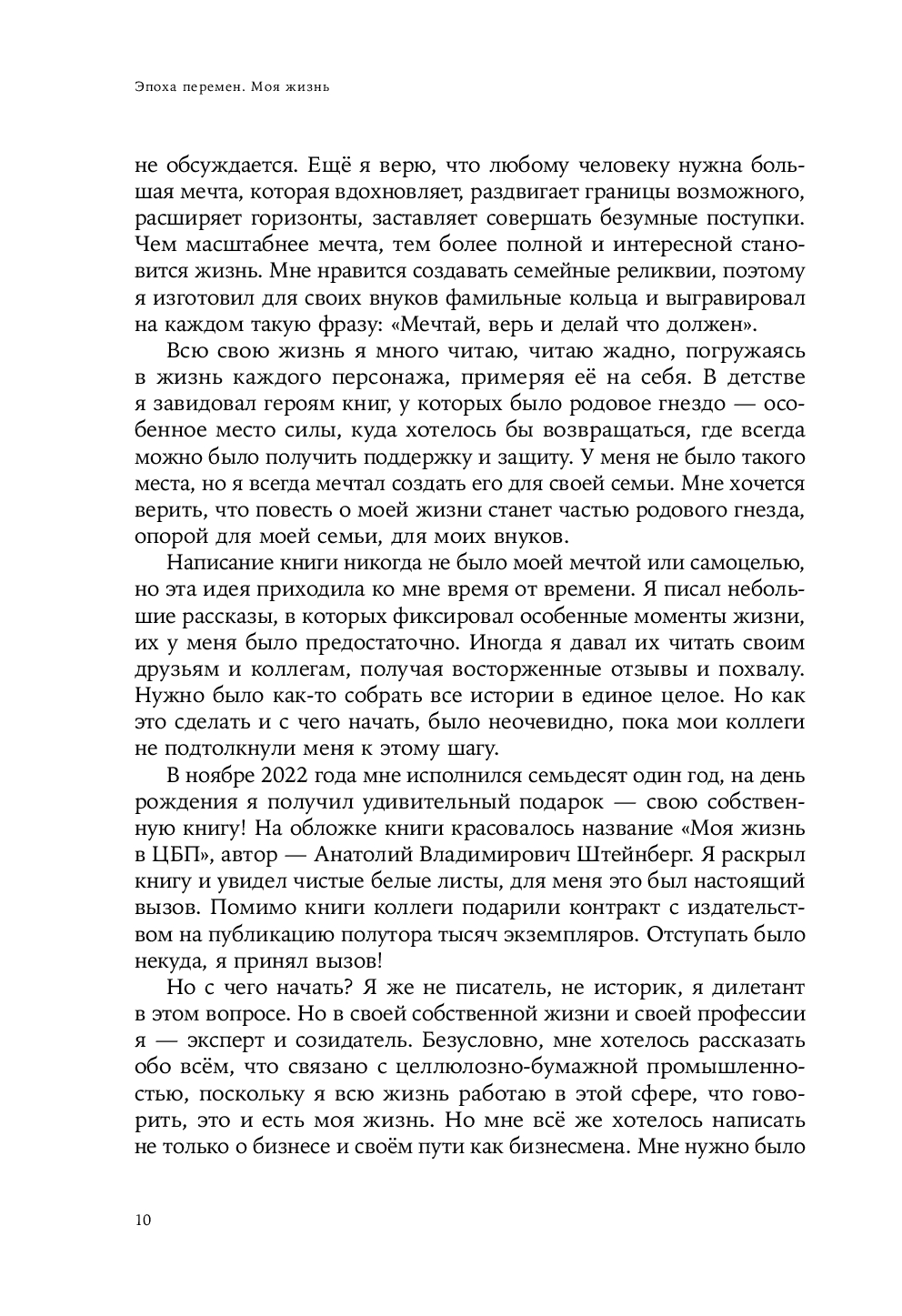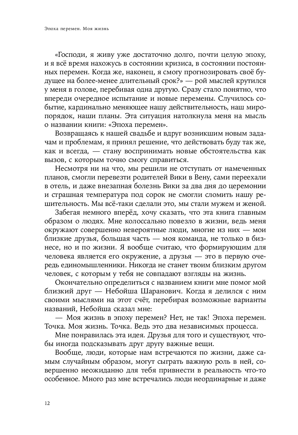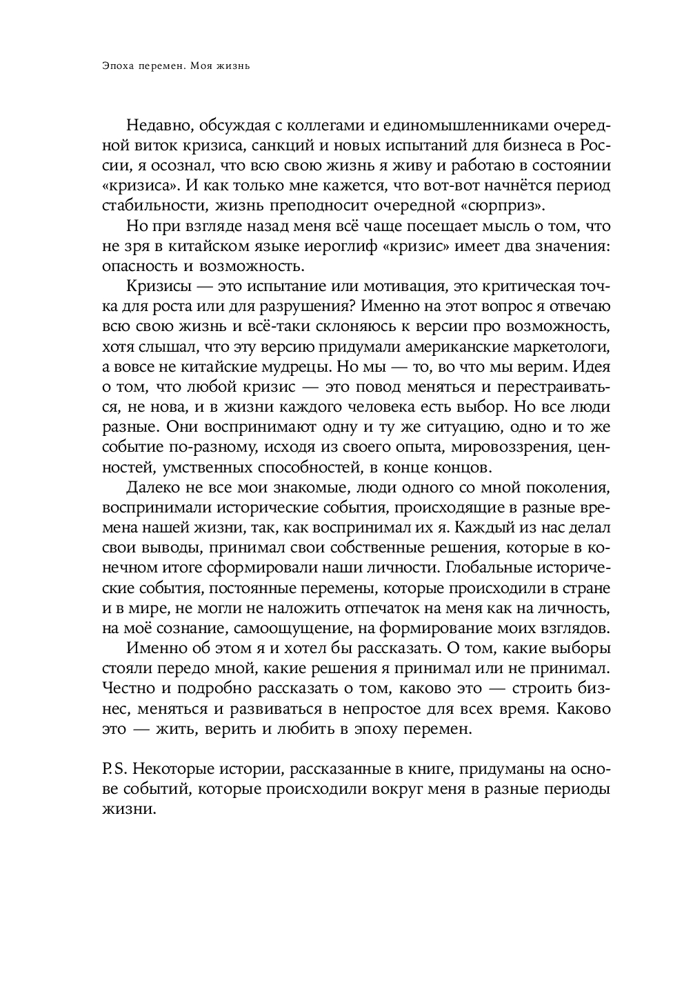 Книга "Эпоха перемен. Моя жизнь" – не просто мемуары. Это полноценный бизнес-роман, в котором вас ждут истории становления бизнеса в бурные девяностые, портреты людей, оставивших след в жизни автора, честный разговор о том, как выжить сегодня и преуспеть завтра в мире, где вчерашние правила уже не работают. Эта книга для тех, кто готов сделать шаг навстречу переменам, открыть новые горизонты для себя и для своего дела. Спешите узнать, как формируется личность в эпоху перемен и как большие мечты становятся реальностью.