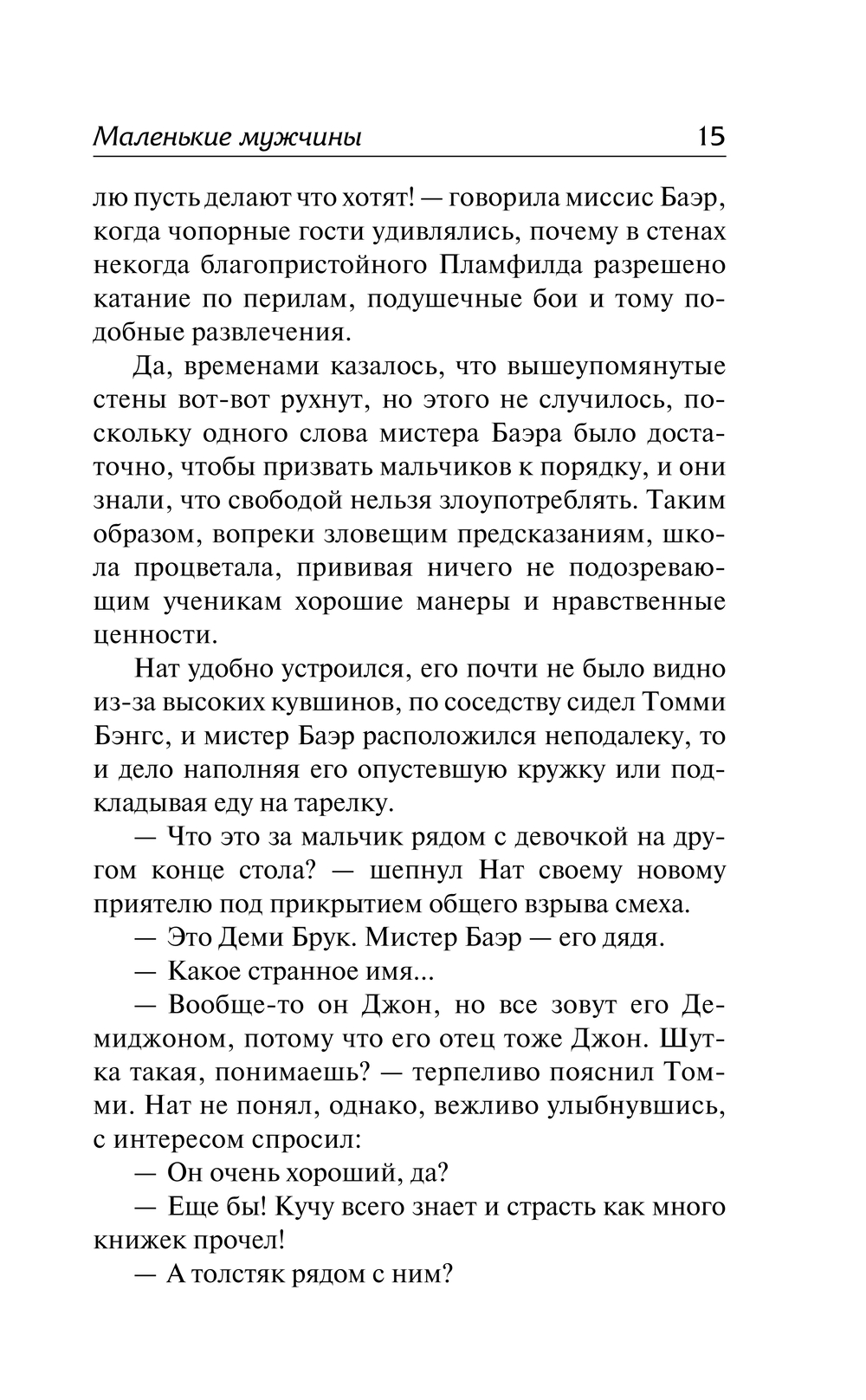 Бывшая озорница и сорвиголова Джо Марч, которую читатели помнят по "Маленьким женщинам", выходит замуж и открывает экспериментальную школу для мальчиков в поместье Пламфильд. Юные ученики школы, двенадцать мальчиков-сирот разных возрастов, учась и играя, работая и ссорясь, борются с недостатками и развивают свои сильные стороны.