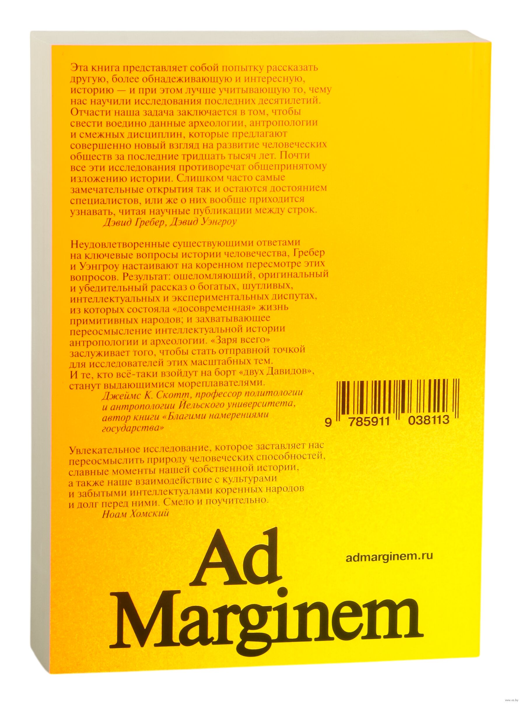 Антрополог Дэвид Гребер и археолог Дэвид Уэнгроу заново складывают пазл истории человечества, бросая вызов доминирующим представлениям о развитии общества как о движении от эгалитарных групп охотников-собирателей – через аграрную революцию и урбанизацию – к созданию иерархических государств.