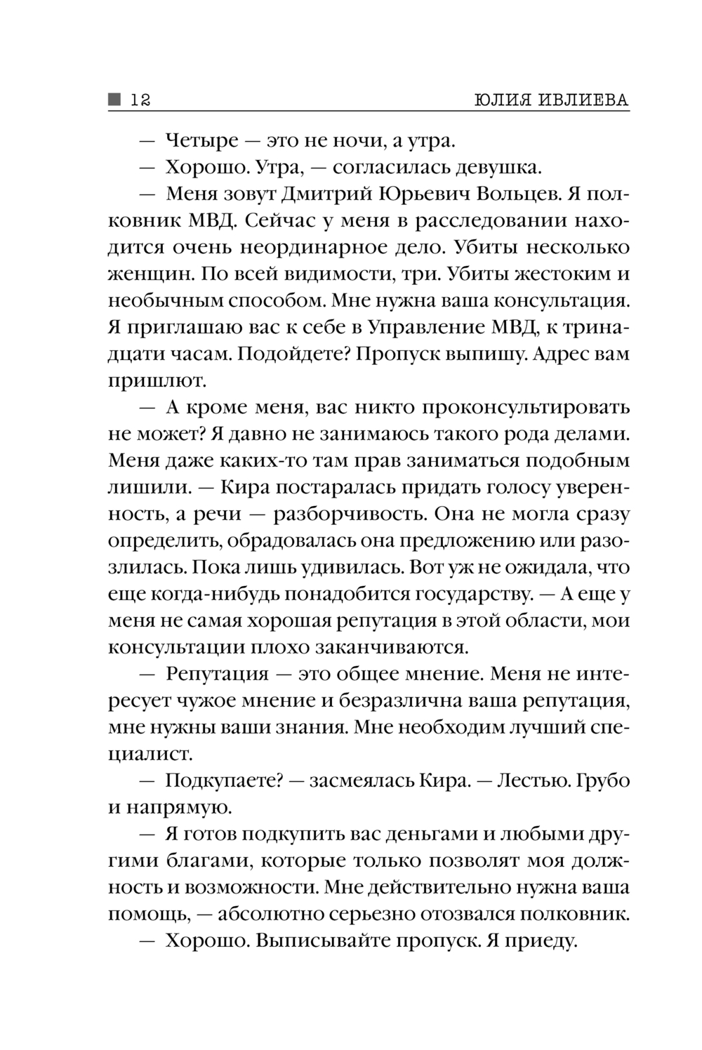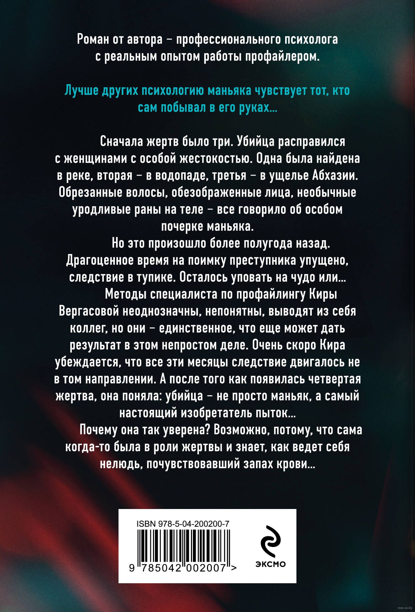 Методы специалиста по профайлингу Киры Вергасовой неоднозначны, непонятны, выводят из себя коллег, но они – единственное, что еще может дать результат в этом непростом деле. Очень скоро Кира убеждается, что все эти месяцы следствие двигалось не в том направлении. А после того, как появилась четвертая жертва, она поняла: убийца – не просто маньяк, а самый настоящий изобретатель пыток...