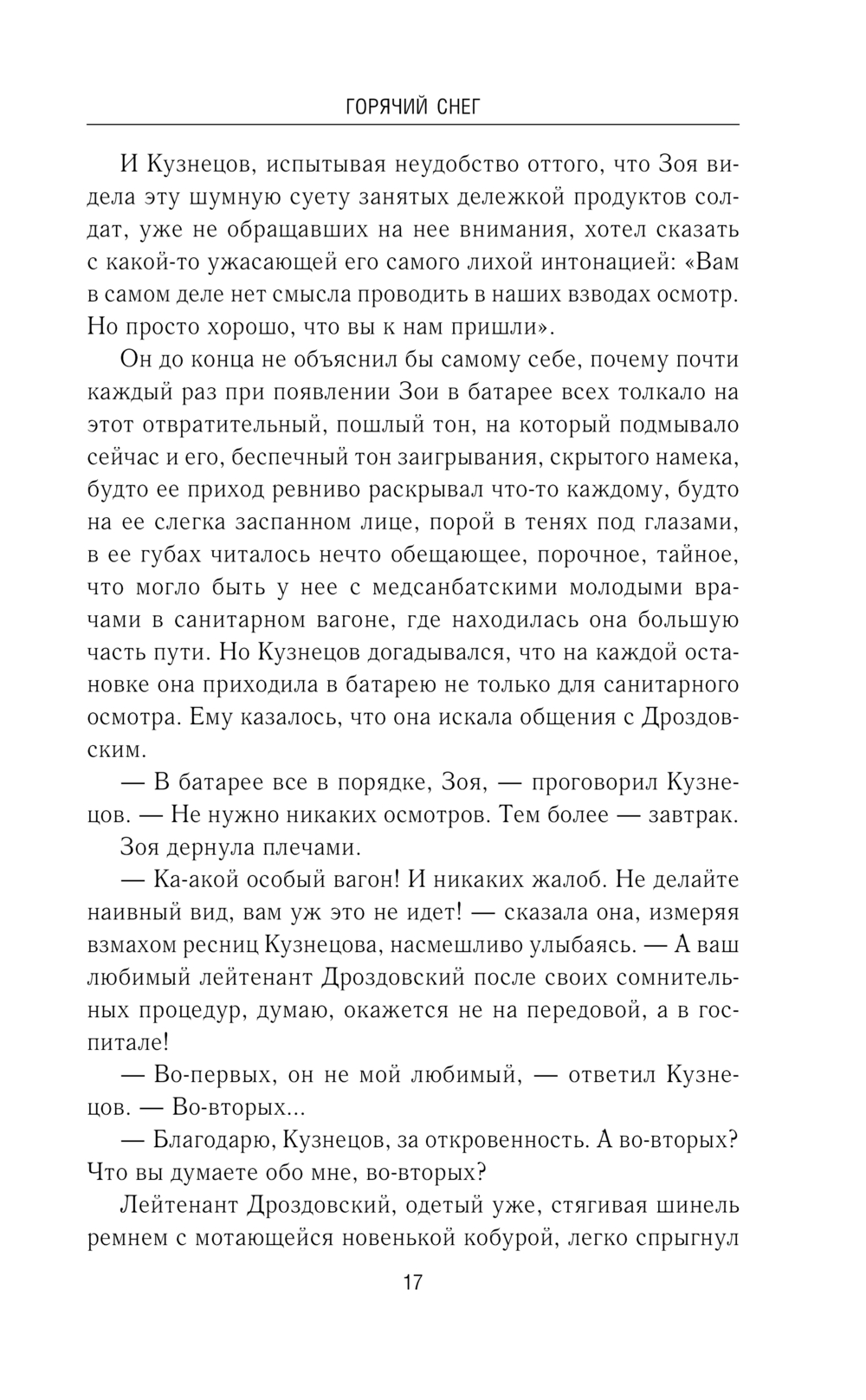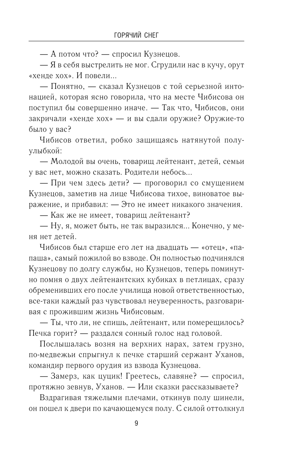 Спустя несколько часов немецкие танки пошли в наступления. Взвода лейтенантов Кузнецова и Давлатяна вступают в ожесточенный бой с немецкими танками. Артиллеристы несут потери от вражеского огня, выбывают расчеты, кончаются боеприпасы, гибнет санинструктор Зоя Елагина. Наконец, генерал Бессонов бросает в контратаку танковый и механизированный корпуса. Уцелевший лейтенант Кузнецов шел по траншее и плакал, вспоминая погибших товарищей "И когда вытирал лицо, снег на рукаве ватника был горячим от его слёз"...