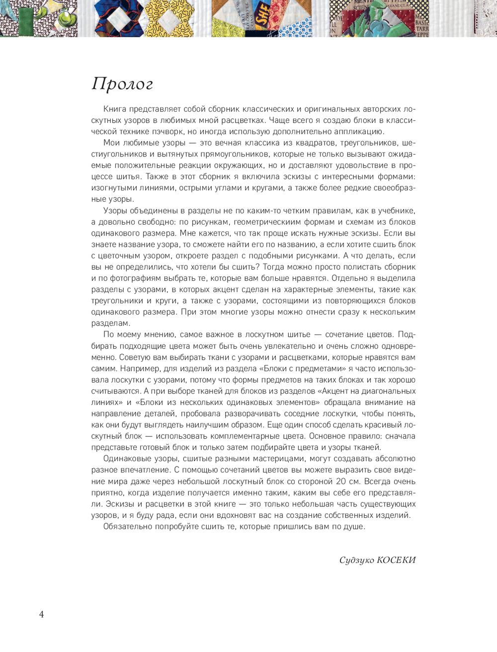 Уникальная коллекция лоскутных дизайнов от знаменитого японского мастера Сузуко Косеки! Признанный во всем мире дизайнер делится своими уникальными методиками и многолетним опытом создания ярких и гармоничных изделий из ткани. Подробные инструкции и описания каждого этапа работы помогут с легкостью овладеть техникой пэчворка, независимо от вашего уровня подготовки.