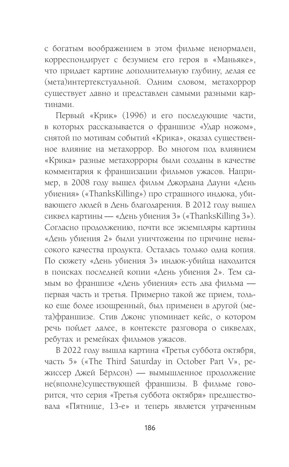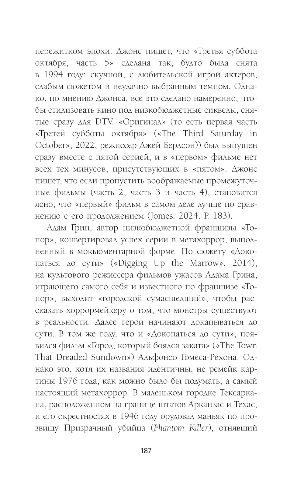 Эти процессы преимущественно на американском материале исследует в своей новой книге философ и киновед Александр Павлов. Особое внимание уделяется изменениям в характере политизации фильмов ужасов, которые вот уже пятьдесят лет отражают многочисленные проблемы разных обществ.