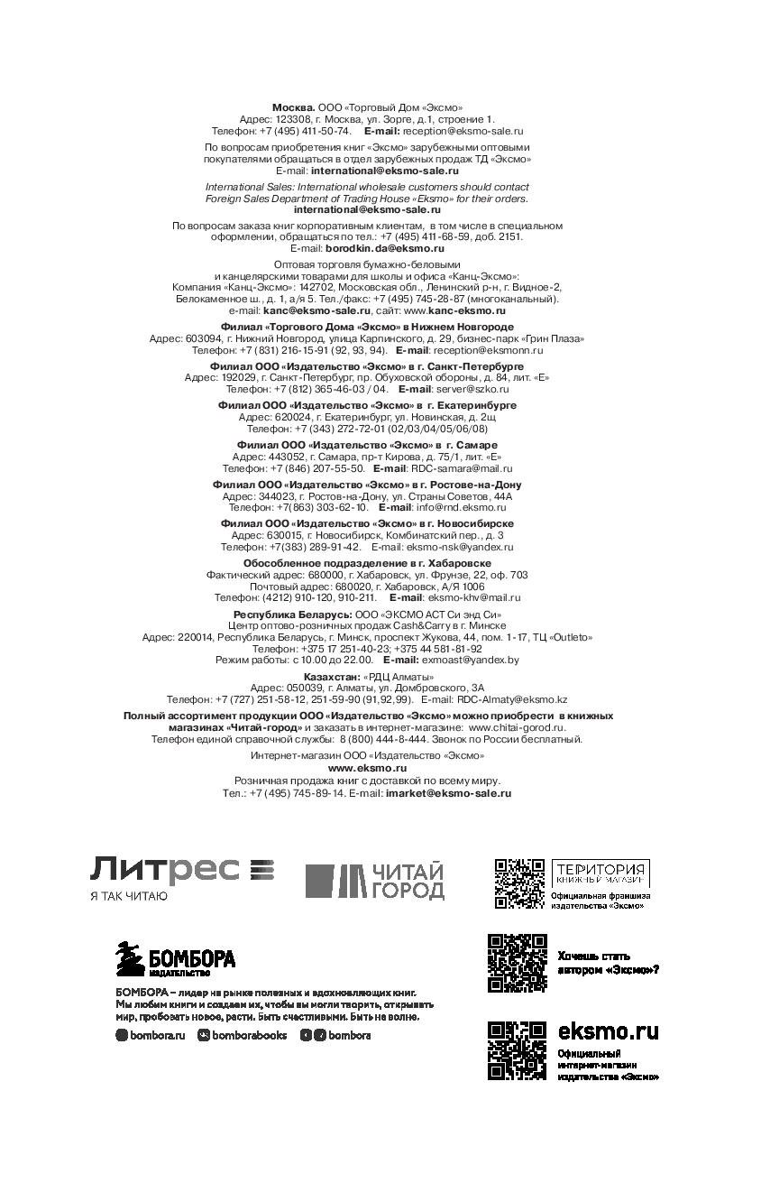 | Изготовитель | ООО "Издательство "Эксмо", 123308, Россия, город Москва, улица Зорге, дом 1, строение 1, этаж 20, каб 2013 |