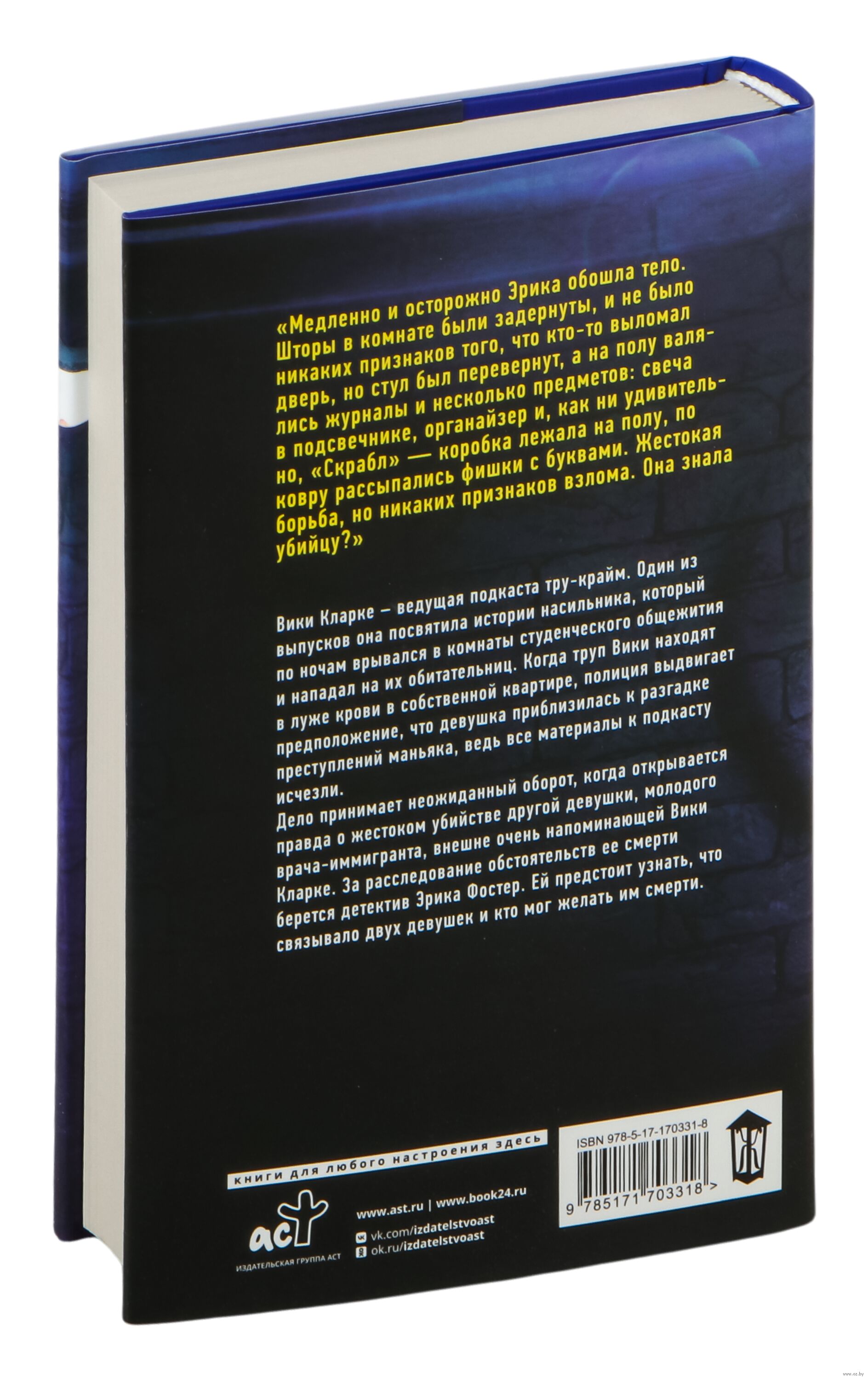 Дело принимает неожиданный оборот, когда открывается правда о жестоком убийстве другой девушки, молодого врача-иммигранта, внешне очень напоминающей Вики Кларке. За расследование обстоятельств ее смерти берется детектив Эрика Фостер. Ей предстоит узнать, что связывало двух девушек и кто мог желать им смерти.