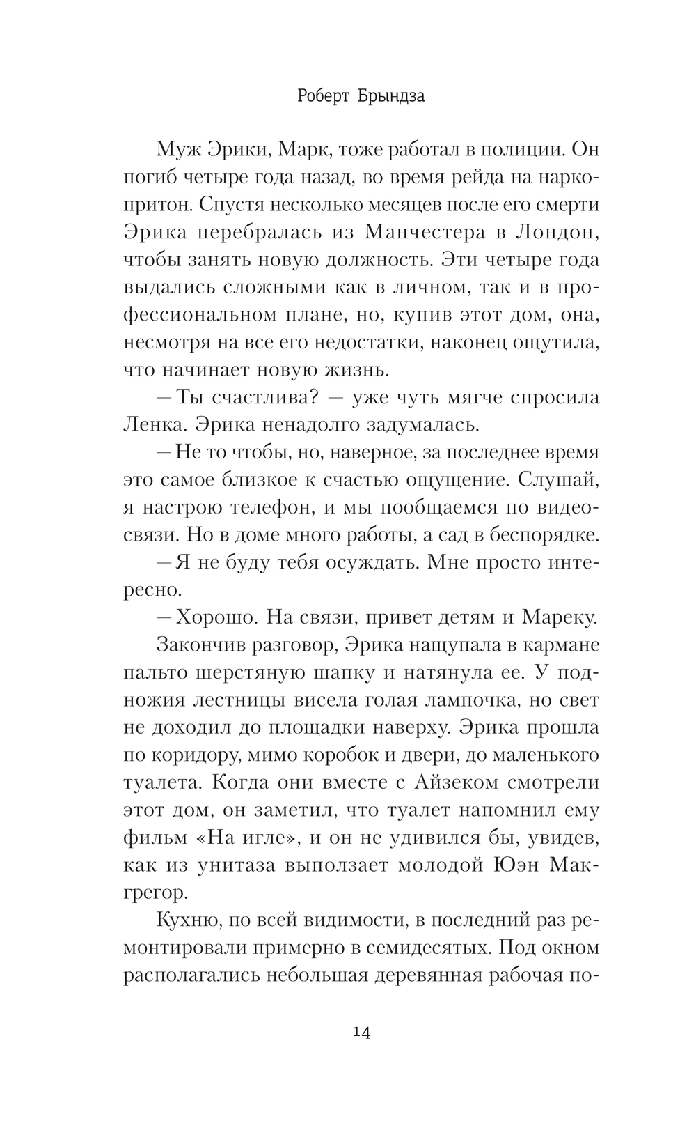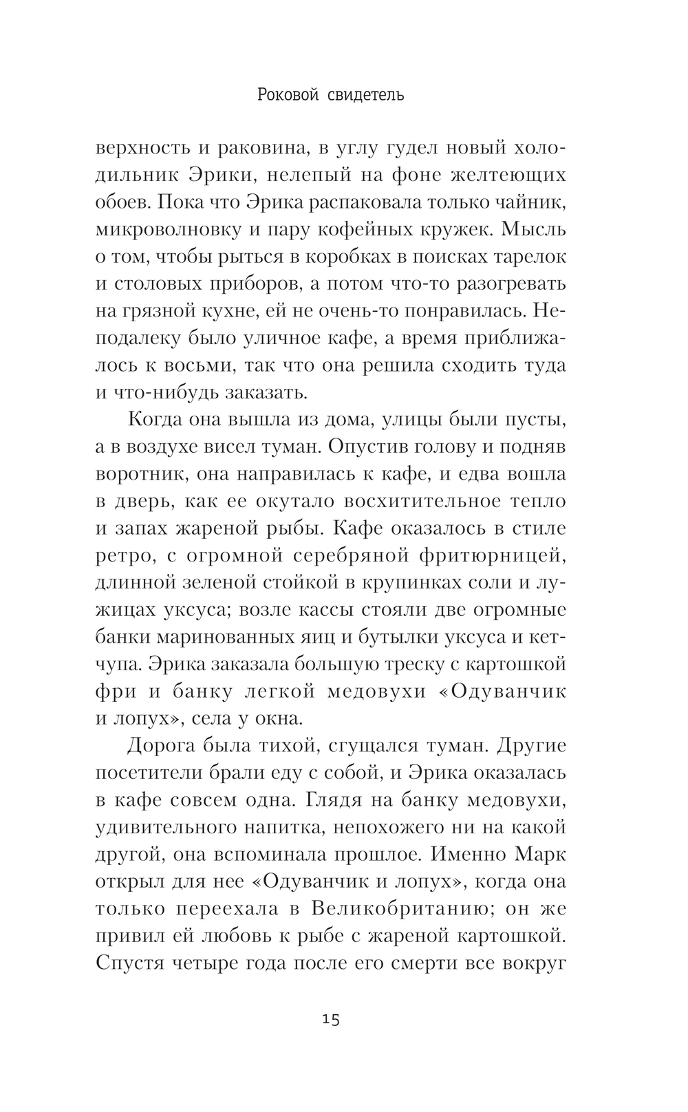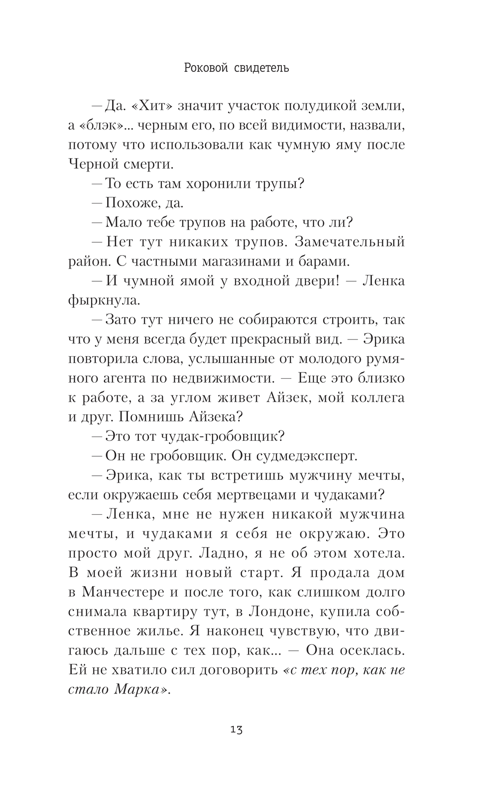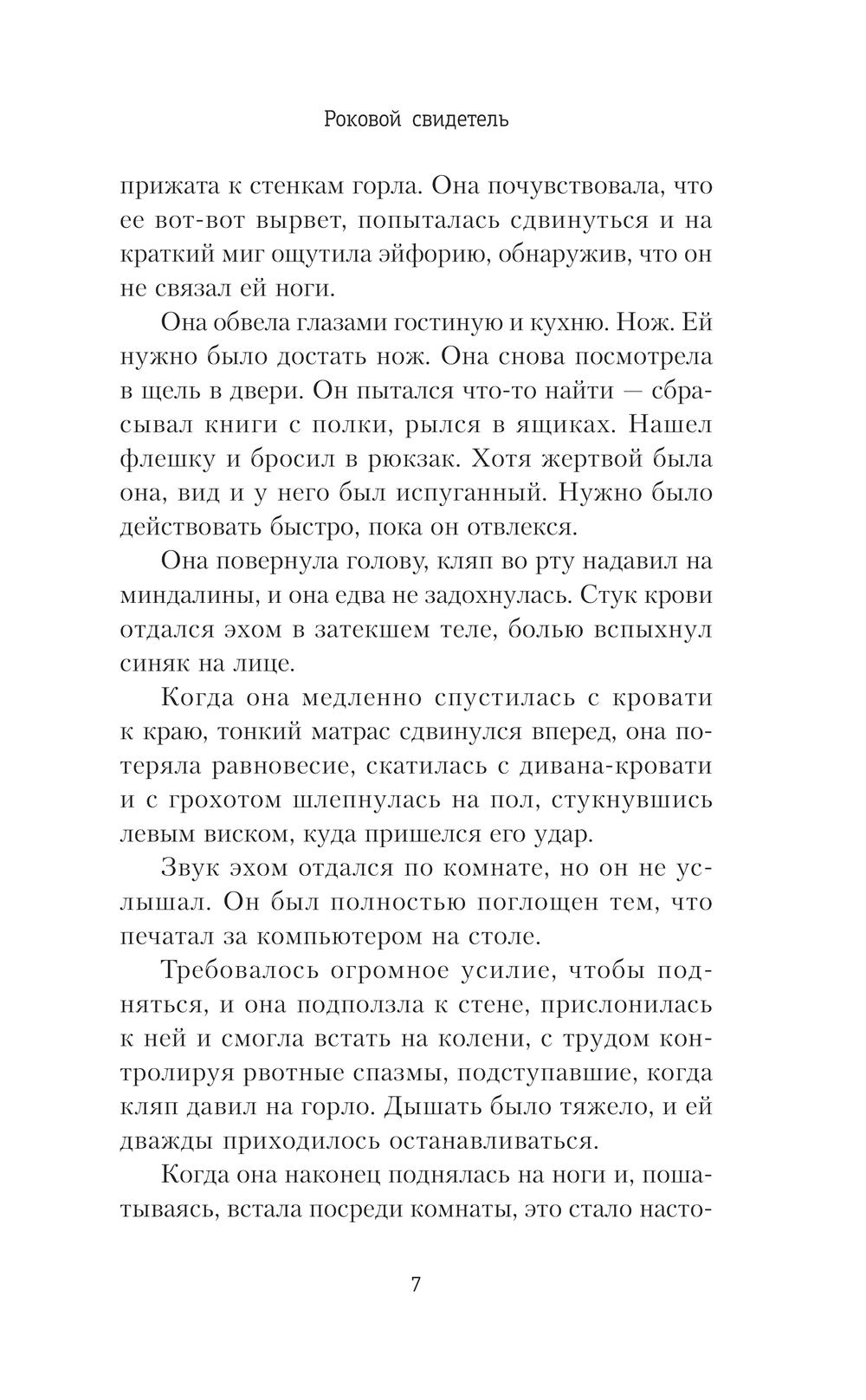 "Медленно и осторожно Эрика обошла тело. Шторы в комнате были задернуты, и не было никаких признаков того, что кто-то выломал дверь, но стул был перевернут, а на полу валялись журналы и несколько предметов: свеча в подсвечнике, органайзер и, как ни удивительно, "Скрабл" – коробка лежала на полу, по ковру рассыпались фишки с буквами. Жестокая борьба, но никаких признаков взлома. Она знала убийцу?"