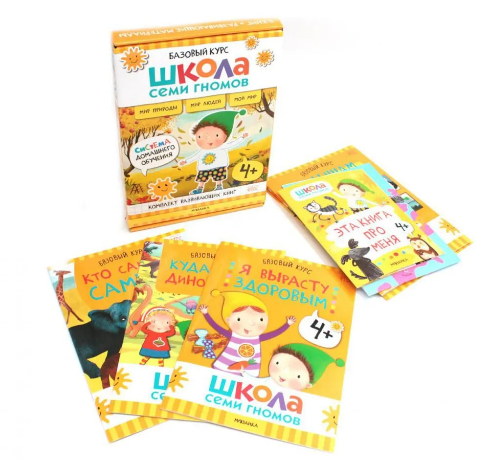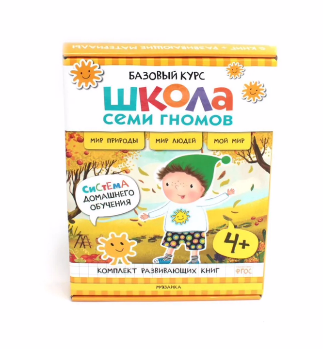 Школа Семи Гномов – это система, а не набор книг. Этот комплект из 6 книг направлен на ознакомление с окружающим миром, его закономерностями и взаимосвязями. Окружающий мир можно условно разделить на мир природы (животный и растительный мир, времена года, погодные явления), мир людей (профессии, транспорт, предметное окружение, материалы и их свойства) и мой мир (эмоции, взаимоотношения, личность ребенка).