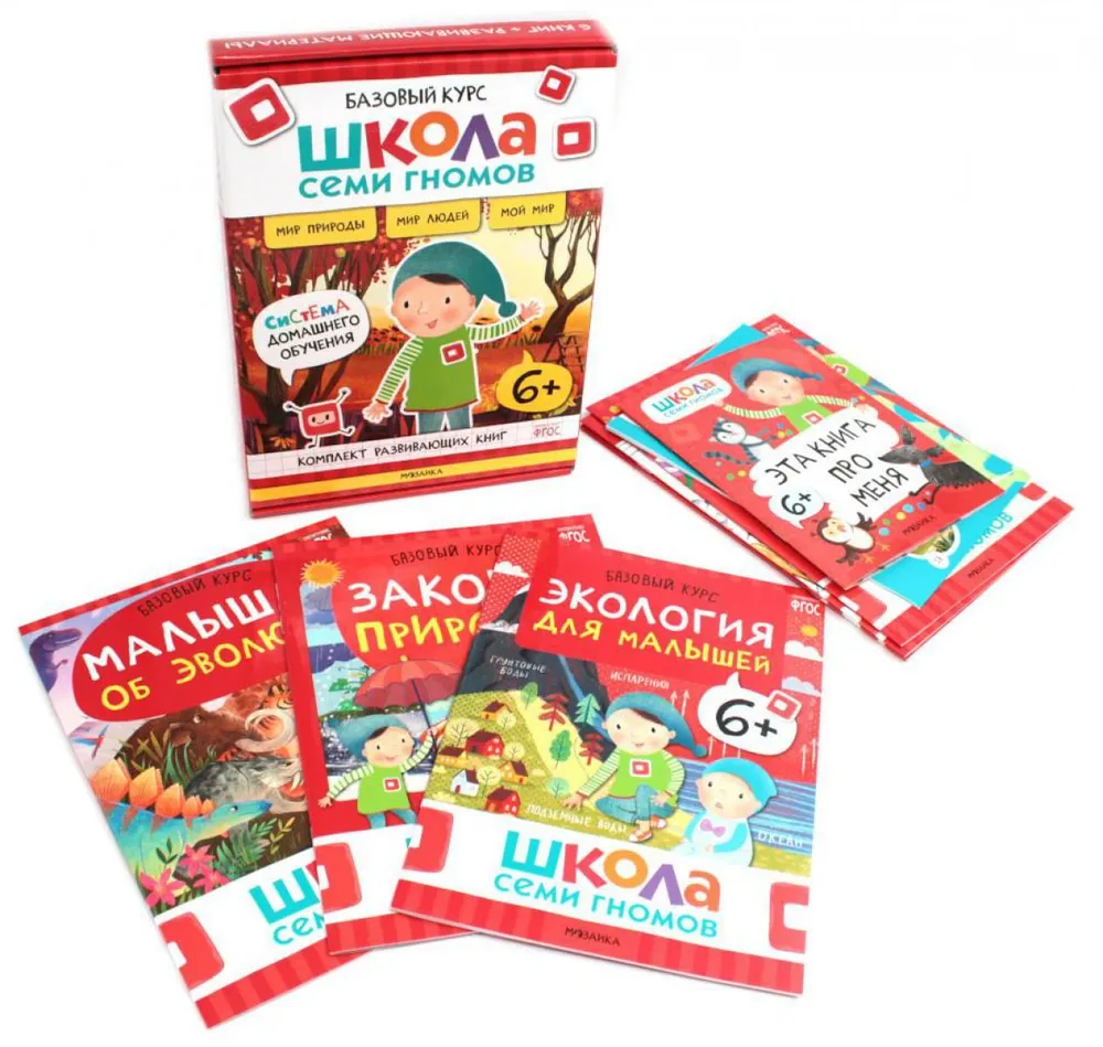 Школа Семи Гномов – это система, а не набор книг. Этот комплект из 6 книг направлен на ознакомление с окружающим миром, его закономерностями и взаимосвязями. Окружающий мир можно условно разделить на мир природы (животный и растительный мир, времена года, погодные явления), мир людей (профессии, транспорт, предметное окружение, материалы и их свойства) и мой мир (эмоции, взаимоотношения, личность ребенка).