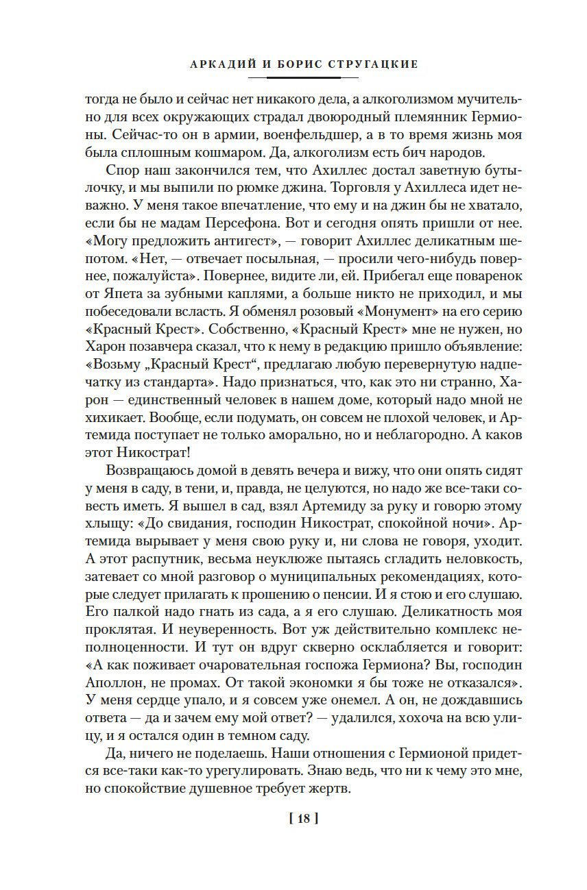 От простого к сложному, от "Страны багровых туч" и ранних повестей и рассказов через "Улитку на склоне" и "Пикник на обочине" к "Граду обреченному" и "Отягощенным злом" – такой творческий путь проделали братья за тридцать лет своей писательской деятельности. Путь кремнистый – сопровождаемый неизменным читательским успехом, с одной стороны, с другой – настороженным отношением высокого писательского начальства. Причины ясны: непредсказуемость их поведения в литературе и подозрительная нетипичность героев, которых авторы ставят перед трудным, но необходимым выбором – либо оставаться людьми и грести против шерсти мира, либо ровно плыть по течению волею злодейки хромой судьбы.