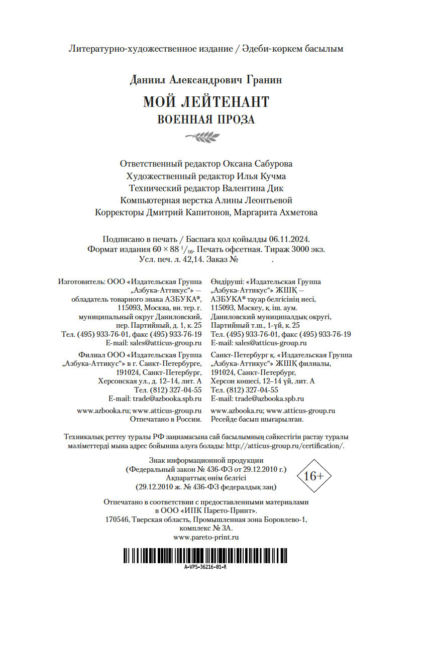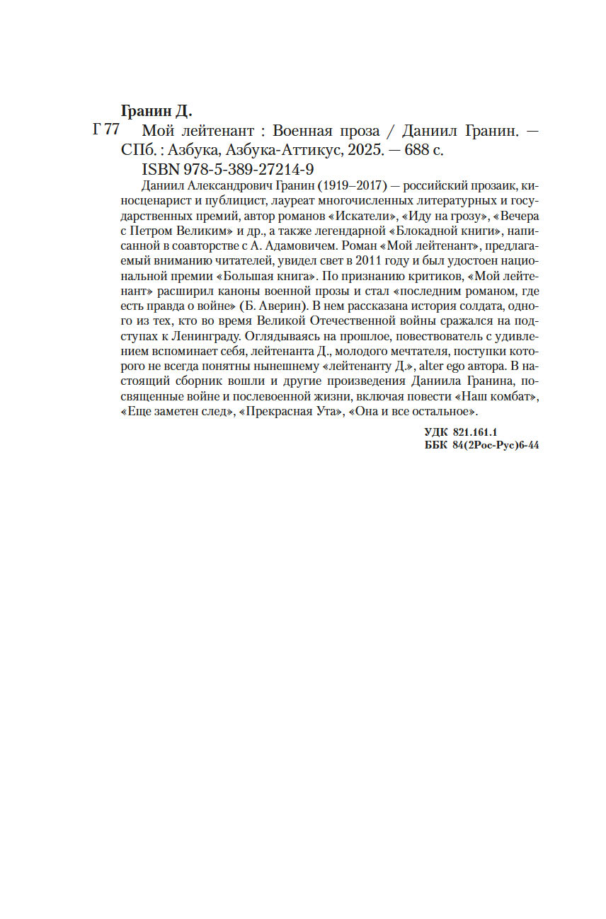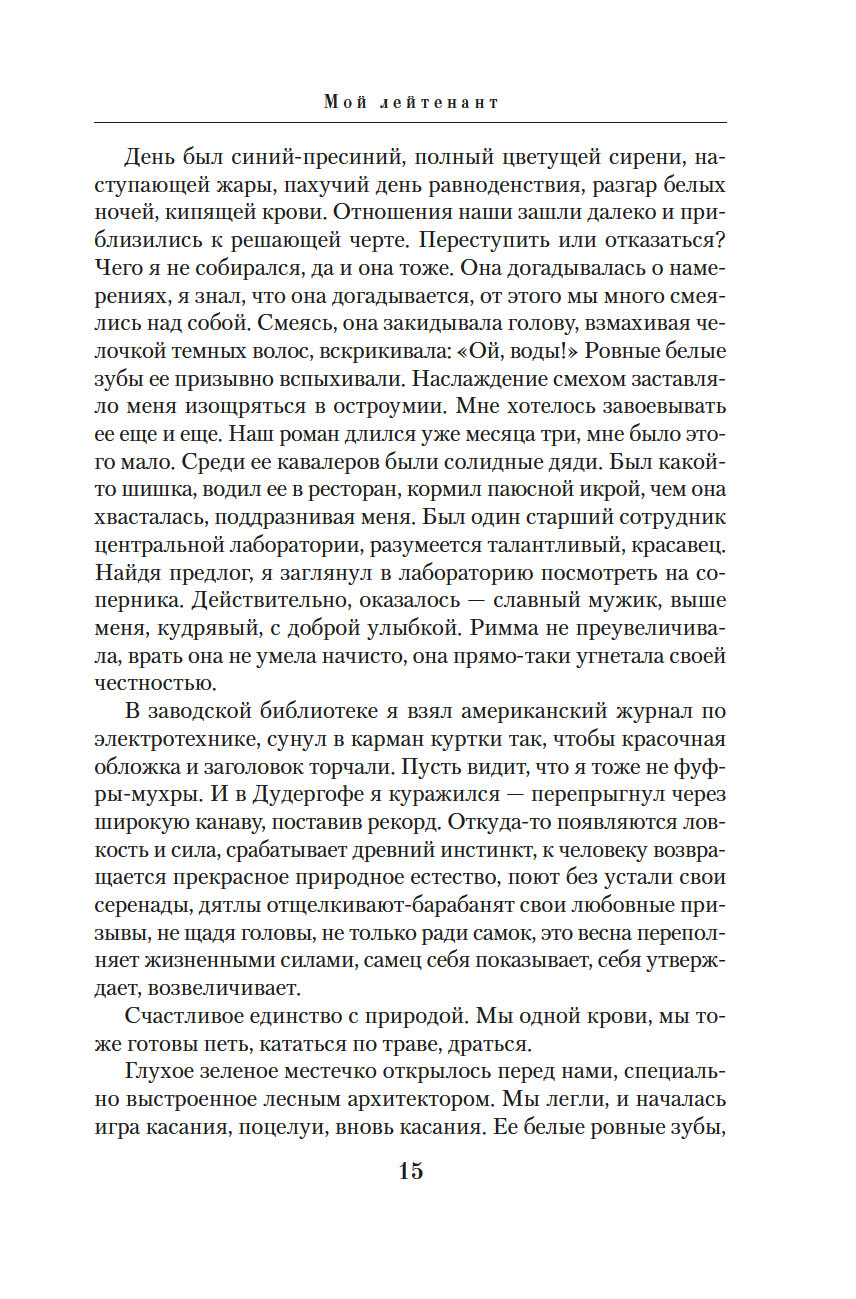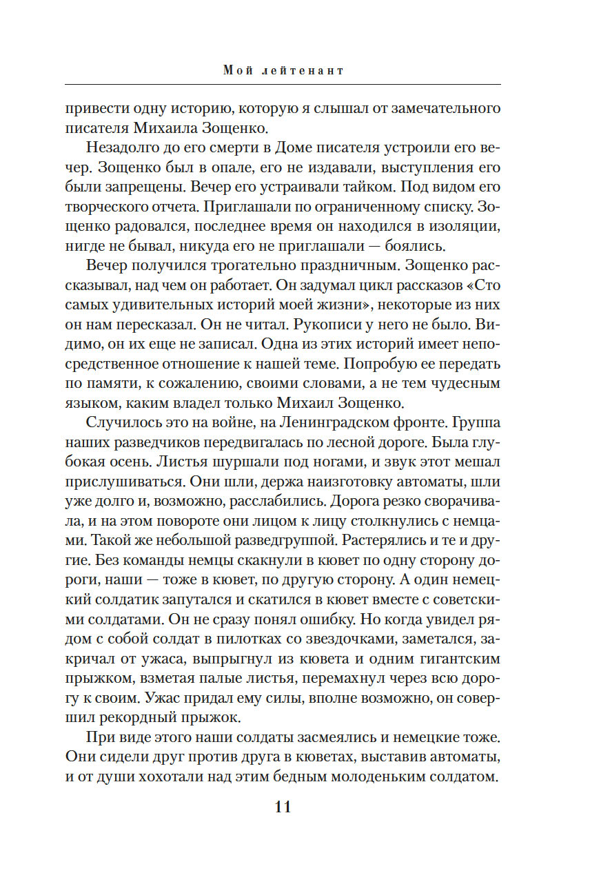 Роман "Мой лейтенант", предлагаемый вниманию читателей, увидел свет в 2011 году и был удостоен национальной премии "Большая книга". По признанию критиков, "Мой лейтенант" расширил каноны военной прозы и стал "последним романом, где есть правда о войне" (Б. Аверин). В нем рассказана история солдата, одного из тех, кто во время Великой Отечественной войны сражался на подступах к Ленинграду. Оглядываясь на прошлое, повествователь с удивлением вспоминает себя, лейтенанта Д., молодого мечтателя, поступки которого не всегда понятны нынешнему "лейтенанту Д.", alter ego автора.