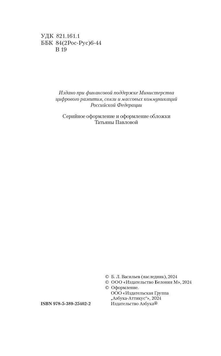 Более тридцати книг, написанных Борисом Васильевым и послуживших основой более пятнадцати кинофильмов, навсегда останутся классикой русской литературы. Произведения Б. Васильева давно включены в школьную программу, и не только в России, – такое признание мало кому из писателей выпадает при жизни.