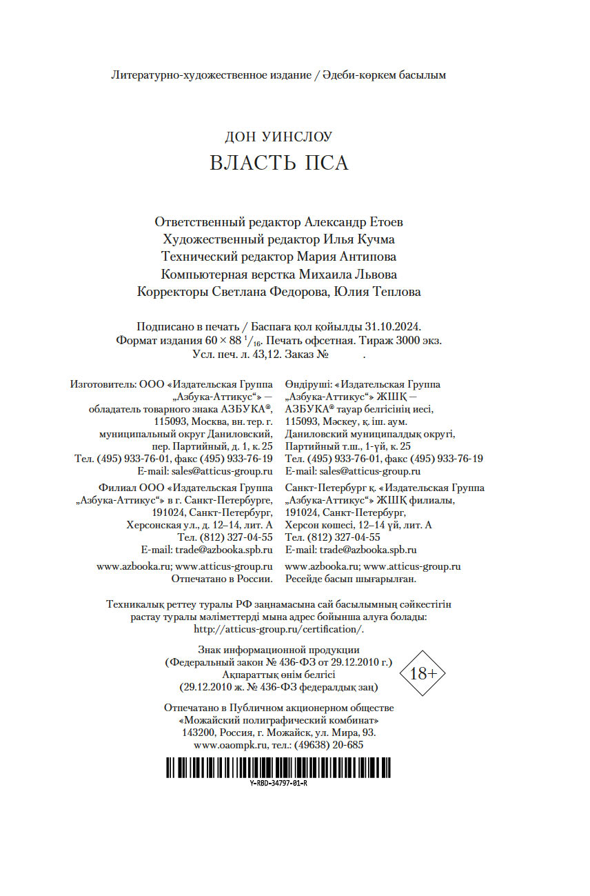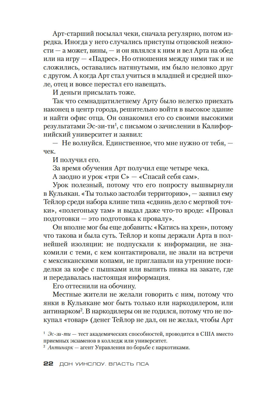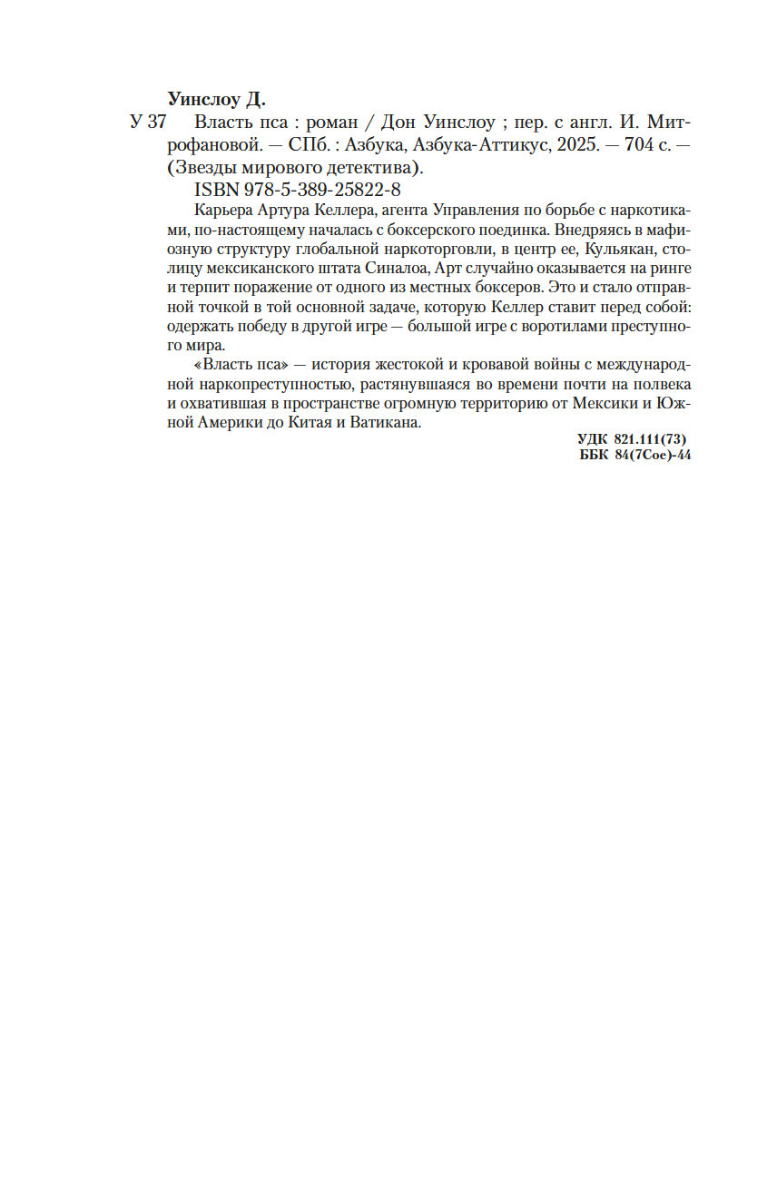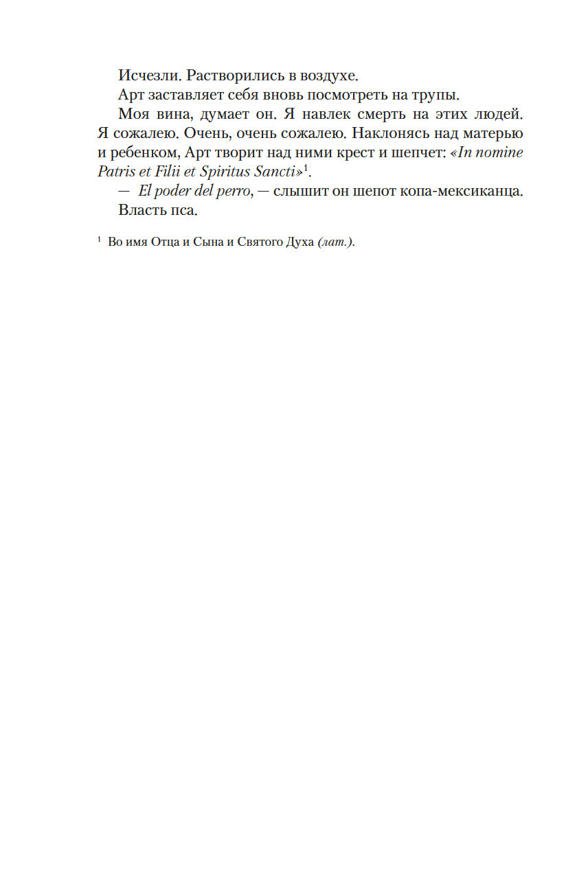 "Власть пса" – история жестокой и кровавой войны с международной наркопреступностью, растянувшаяся во времени почти на полвека и охватившая в пространстве огромную территорию от Мексики и Южной Америки до Китая и Ватикана.