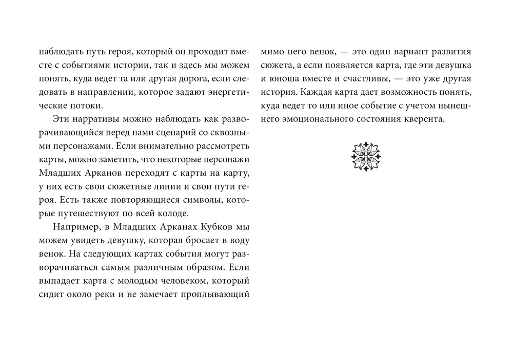 Особенность колоды, которая редко встречается в других Таро – это связь историй на картах с помощью одних и тех же персонажей. В Таро Уэйта-Смит изначально есть связь историй между Арканами, но в этой колоде она более заметна. Герои Младших Арканов не пропадают, а продолжают свое повествование на других картах, раскрывая новые грани своих образов и символов.