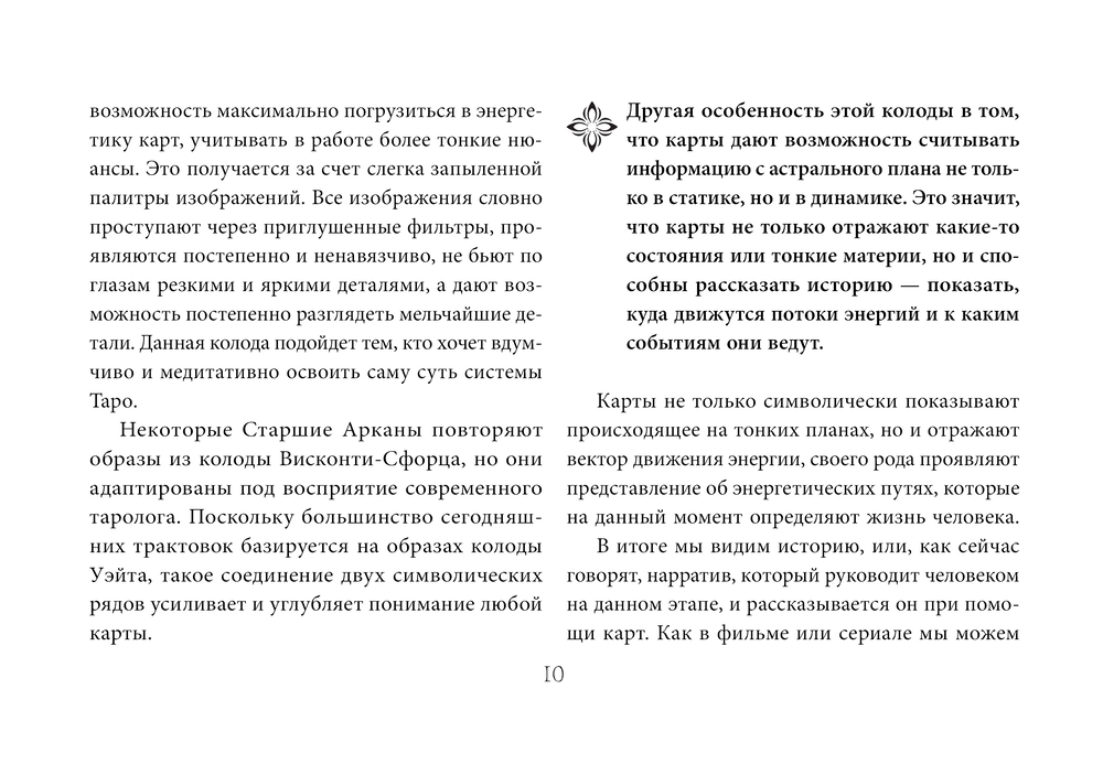 Эта колода словно несет в себе отпечаток прошлой эпохи, но в то же время соединяет всю историю развития и расшифровки образов Таро. Она служит мостом между нашим временем и прошлыми веками.