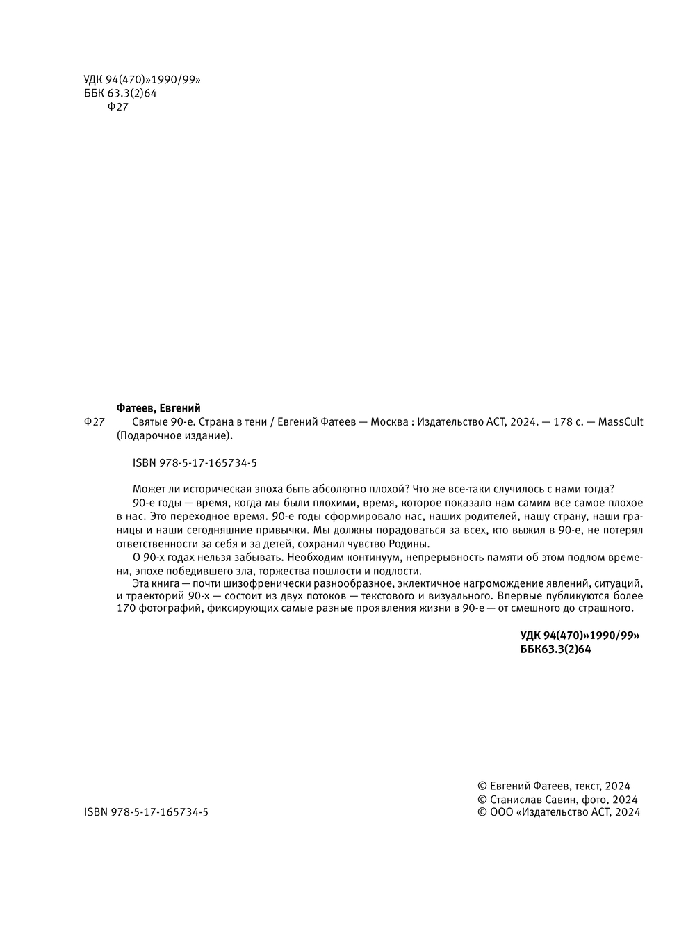 Эта книга – почти шизофренически разнообразное, эклектичное нагромождение явлений, ситуаций, и траекторий 90-х – состоит из двух потоков – текстового и визуального. Впервые публикуются более 170 фотографий, фиксирующих самые разные проявления жизни в 90-е – от смешного до страшного.
