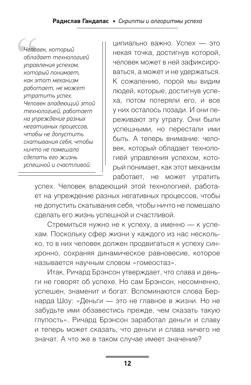 Радислав Гандапас – один из самых влиятельных бизнес-тренеров России – на собственном примере доказал, что достичь успеха можно, если совершаешь правильные действия. У вас есть уникальная возможность, не рискуя своим здоровьем и энергией, своей личной жизнью, не жертвуя своей карьерой или бизнесом, получить этот опыт в концентрированном виде. Автор делится секретами формирования мышления успешного человека и рассказывает, какие навыки необходимо развивать, чтобы реализовать свой потенциал. Начните свой путь к успеху уже сегодня!