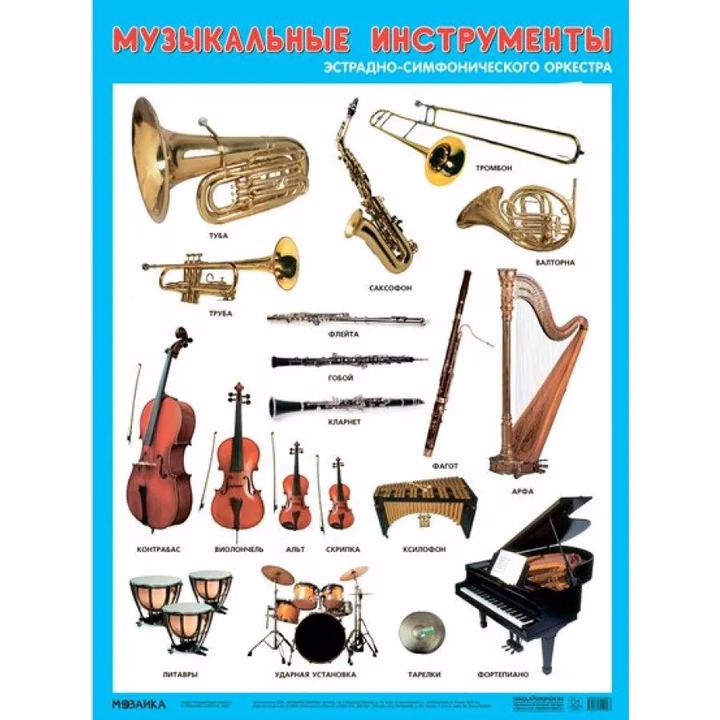 Развивающие плакаты. Музыкальные инструменты эстрадно-симфонического оркестра