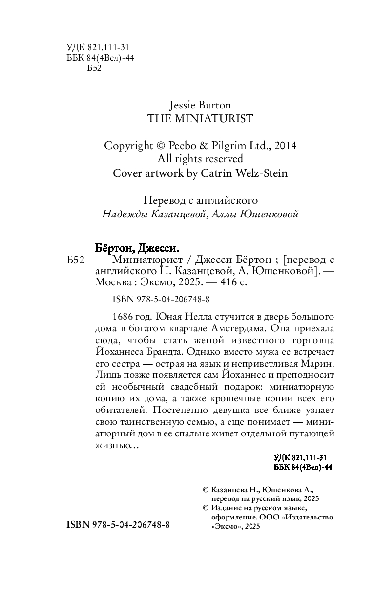 1686 год. Юная Нелла стучится в дверь большого дома в богатом квартале Амстердама. Она приехала сюда, чтобы стать женой известного торговца Йоханнеса Брандта. Однако вместо мужа ее встречает его сестра – острая на язык и неприветливая Марин. Лишь позже появляется сам Йоханнес и преподносит ей необычный свадебный подарок: миниатюрную копию их дома, а также крошечные копии всех его обитателей. Постепенно девушка все ближе узнает свою таинственную семью, а еще понимает – миниатюрный дом в ее спальне живет отдельной пугающей жизнью...