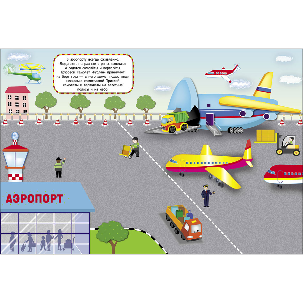 Ваш малыш интересуется разными видами транспорта? Тогда эта книжка специально для него. Поезда и электрички, катера и океанские лайнеры, самолёты и вертолёты, гоночные машины и спецтехника – скорее открывайте и приклеивайте наклейки на странички.
