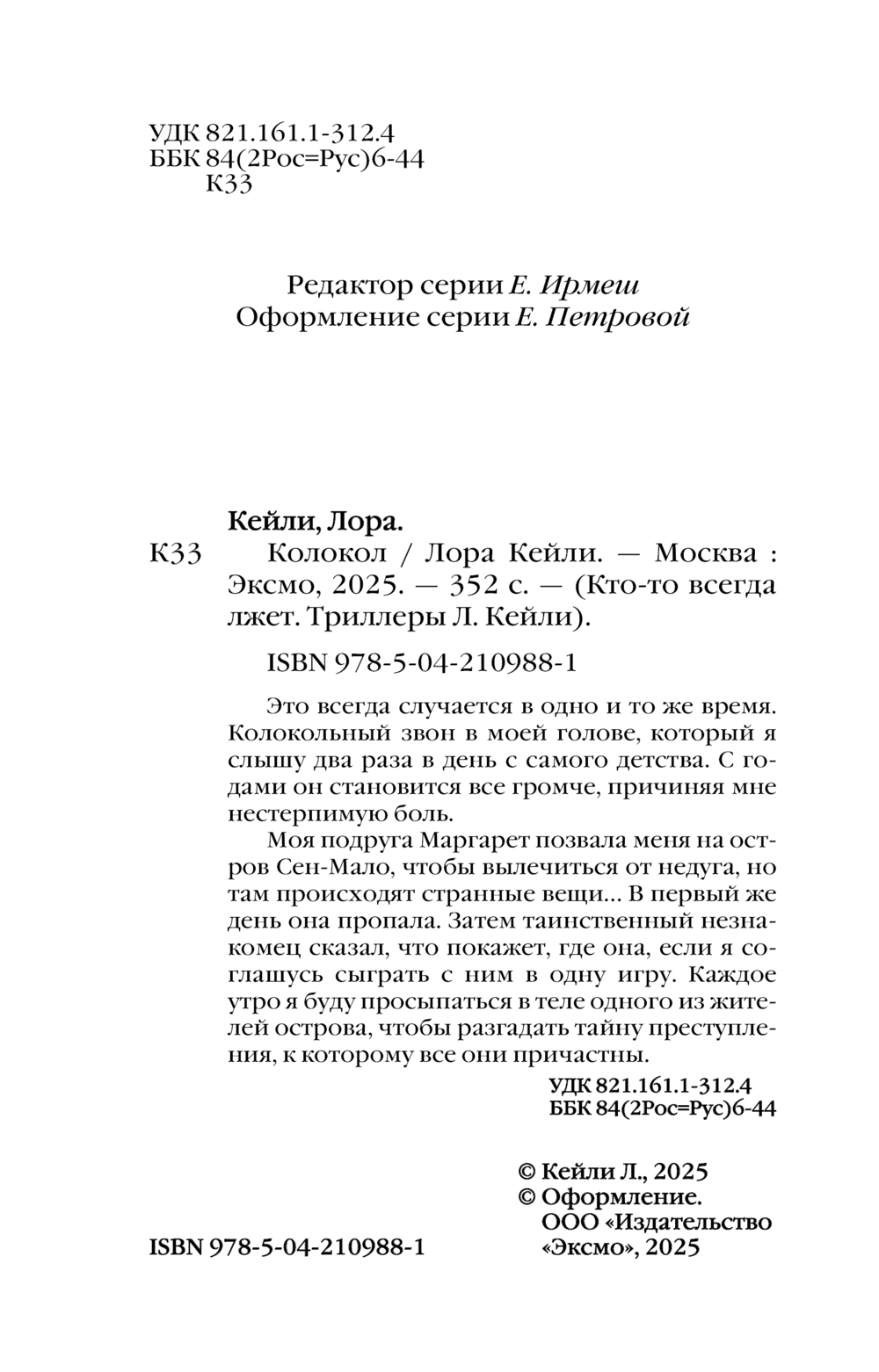 | Серия | Кто-то всегда лжёт. Триллеры Л. Кейли |