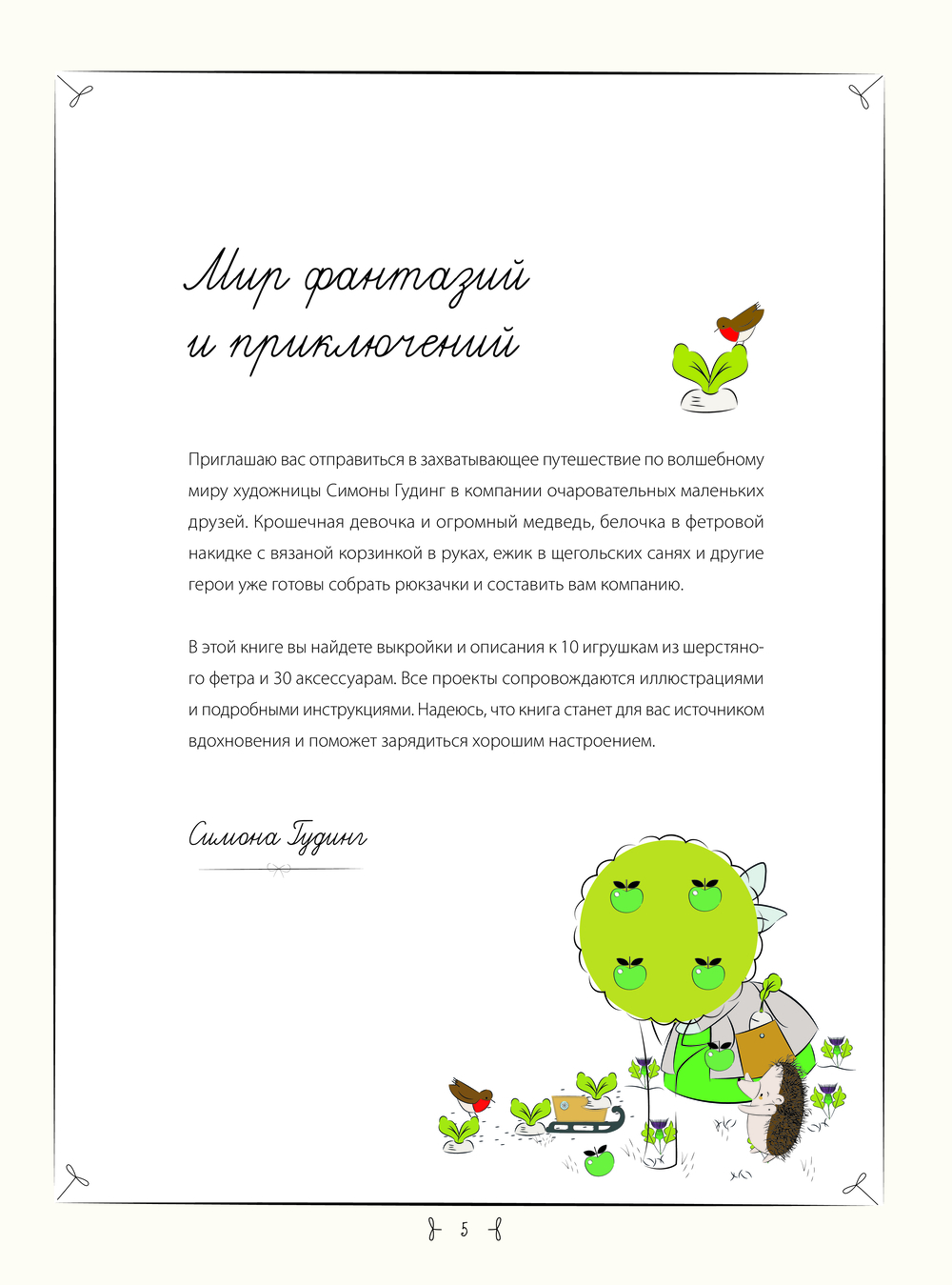 Откройте для себя сказочный мир волшебства с книгой Симоне Гудинг, художницы и создательницы невероятно обаятельных игрушек. Познакомьтесь с лягушонком-мореплавателем, ежиком в уютных санях, улиткой-почтальоном и их друзьями.