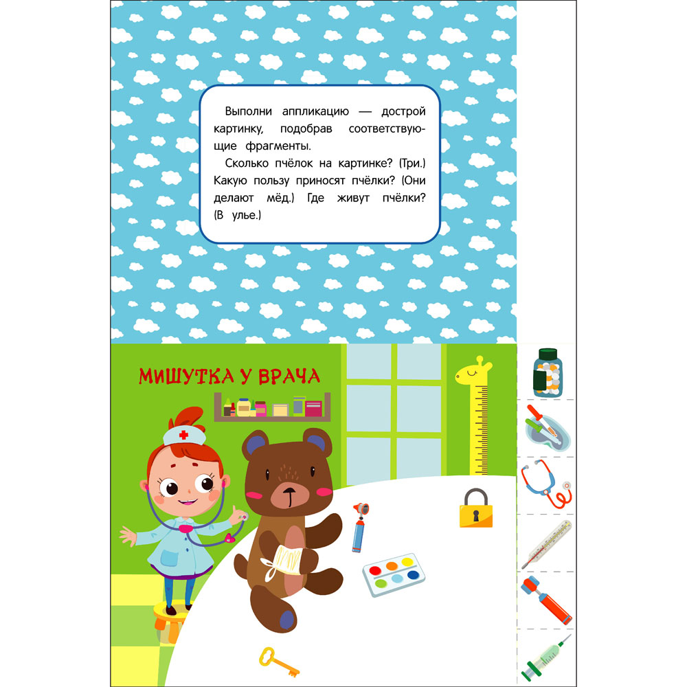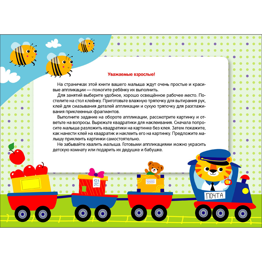На страничках этой книги вашего малыша ждут очень простые и красивые аппликации – помогите ребёнку их выполнить. Для занятий выберите удобное, хорошо освещённое рабочее место. Постелите на стол клеёнку. Приготовьте влажную тряпочку для вытирания рук, клей для смазывания деталей аппликации и сухую тряпочку для разглаживания приклеенных фрагментов.