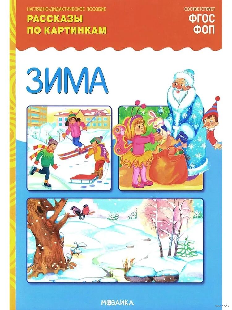 Наглядно-дидактическое пособие "Зима" серии "Рассказы по картинкам" предназначено для развития связной речи у детей 3-7 лет на групповых и индивидуальных занятиях в детском саду и дома. В пособии представлены 8 красочных иллюстраций на тему "Зима" (новогодний праздник, дети заботятся о природе и др.).