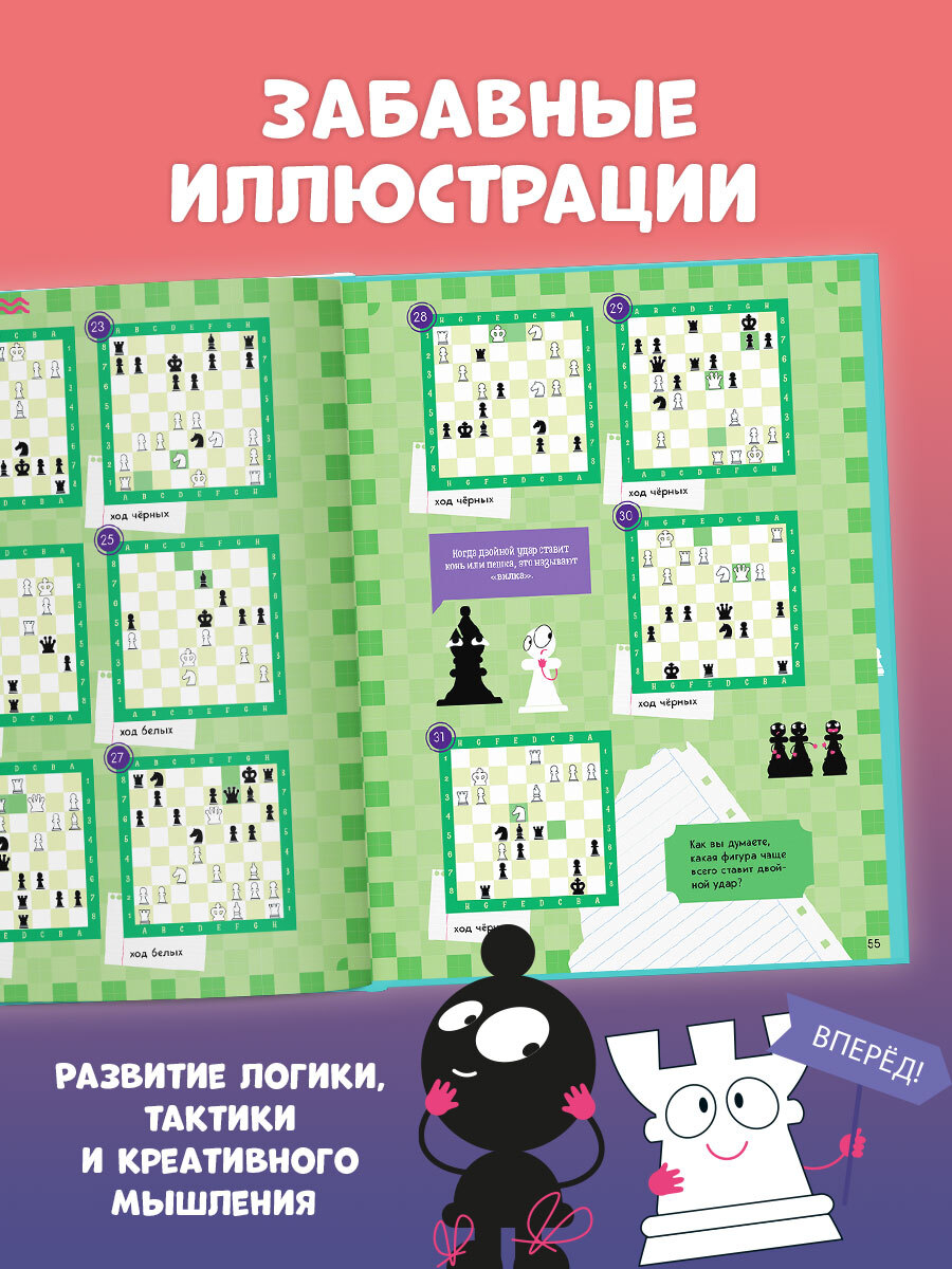 Книга содержит интересные задачи и ситуации, которые помогут юным шахматистам улучшить свою тактику и принятие решений на шахматной доске. Решение таких задач – главный инструмент тренировки шахматиста. Каждый раздел посвящен определенным аспектам игры – простые взятия и мат в один ход, двойной и сквозной удары, связка-рентген (двойной шах, вскрытый шах, вскрытое нападение), отвлечение и активная защита. Понятные объяснения, остроумные иллюстрации и пошаговые решения сделают обучение легким и увлекательным. В некоторых темах есть QR-код, который ведет на видеоурок, где разбирается тот или иной тактический прием.