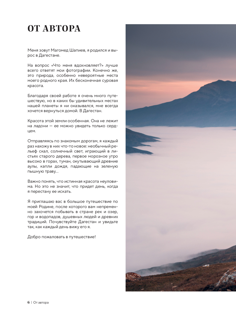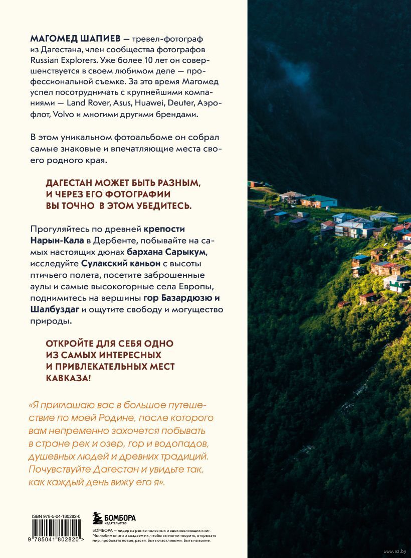 Это яркое подарочное издание с фотографиями Магомеда Шапиева, известного тревел-фотографа и члена команды Russian Explorers, позволит каждому погрузиться в невероятную красоту Дагестана. Вы прогуляетесь по древней крепости Нарын-Кала в Дербенте, побываете на самых настоящих дюнах бархана Сарыкум, увидите Сулакский каньон с высоты птичьего полета, посетите заброшенные аулы и самые высокогорные села Европы, поднимитесь на вершину горы Базардюзю и ощутите свободу и могущество природы. Откройте для себя одно из самых загадочных и привлекательных мест Кавказа!