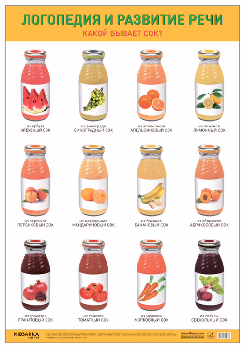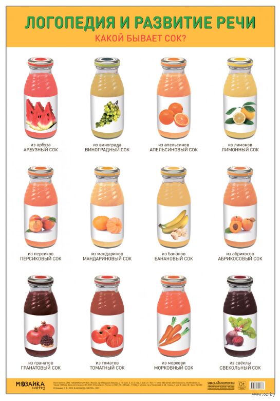 Плакаты. Логопедия и развитие речи. Какой бывает сок?