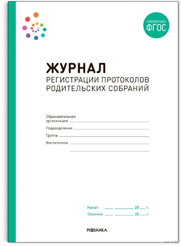 Журнал протоколов предназначен воспитателям, педагогам дополнительного образования, а также всем ответственным за проведение и протокольную фиксацию родительских собраний лицам. В издательстве широкий ассортимент, для детей и воспитателей, рабочих тетрадей по математике, развитию речи, счету, прописи, грамоте, учебники по рисованию, лепке, аппликации, экологическому воспитанию, методические материалы и уроки для дошкольников, тематическое планирование, конспекты занятий рекомендованные ФГОС, инновационная программа дошкольного образования и многое другое.