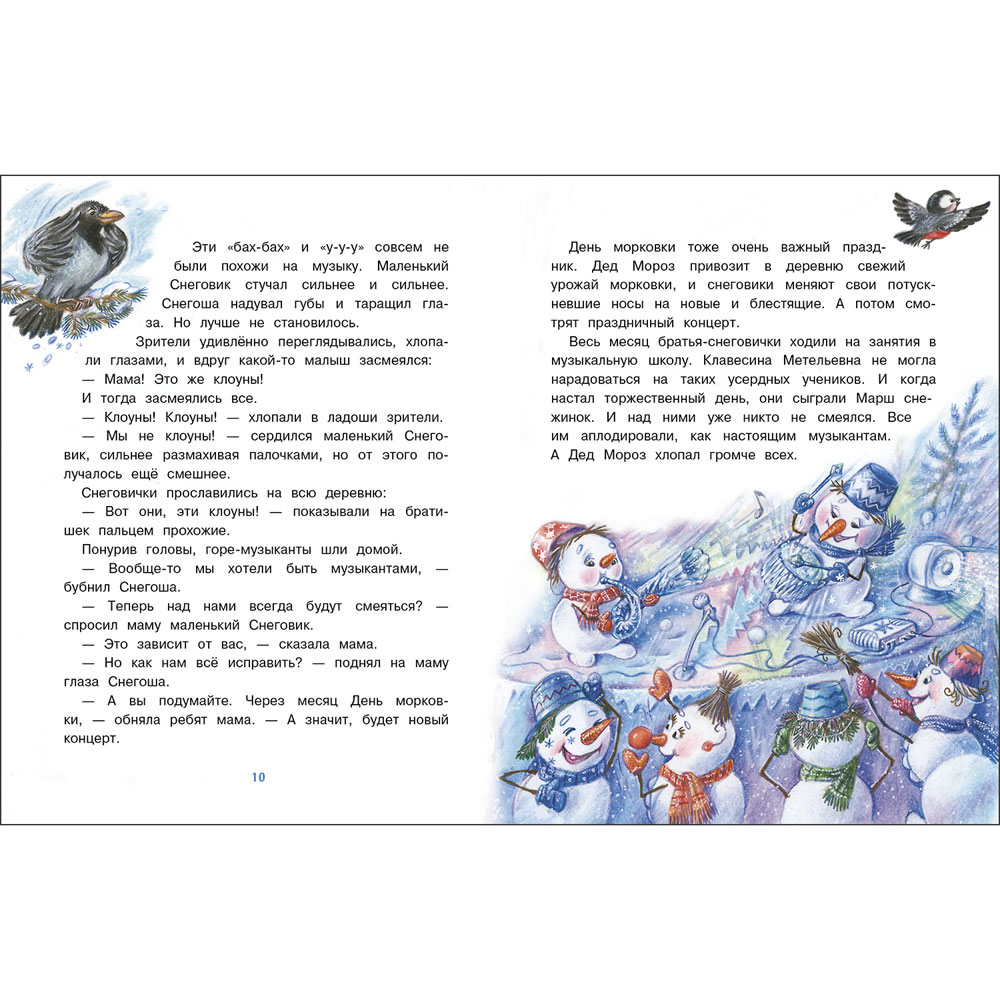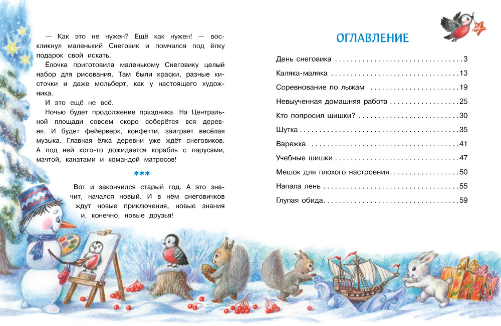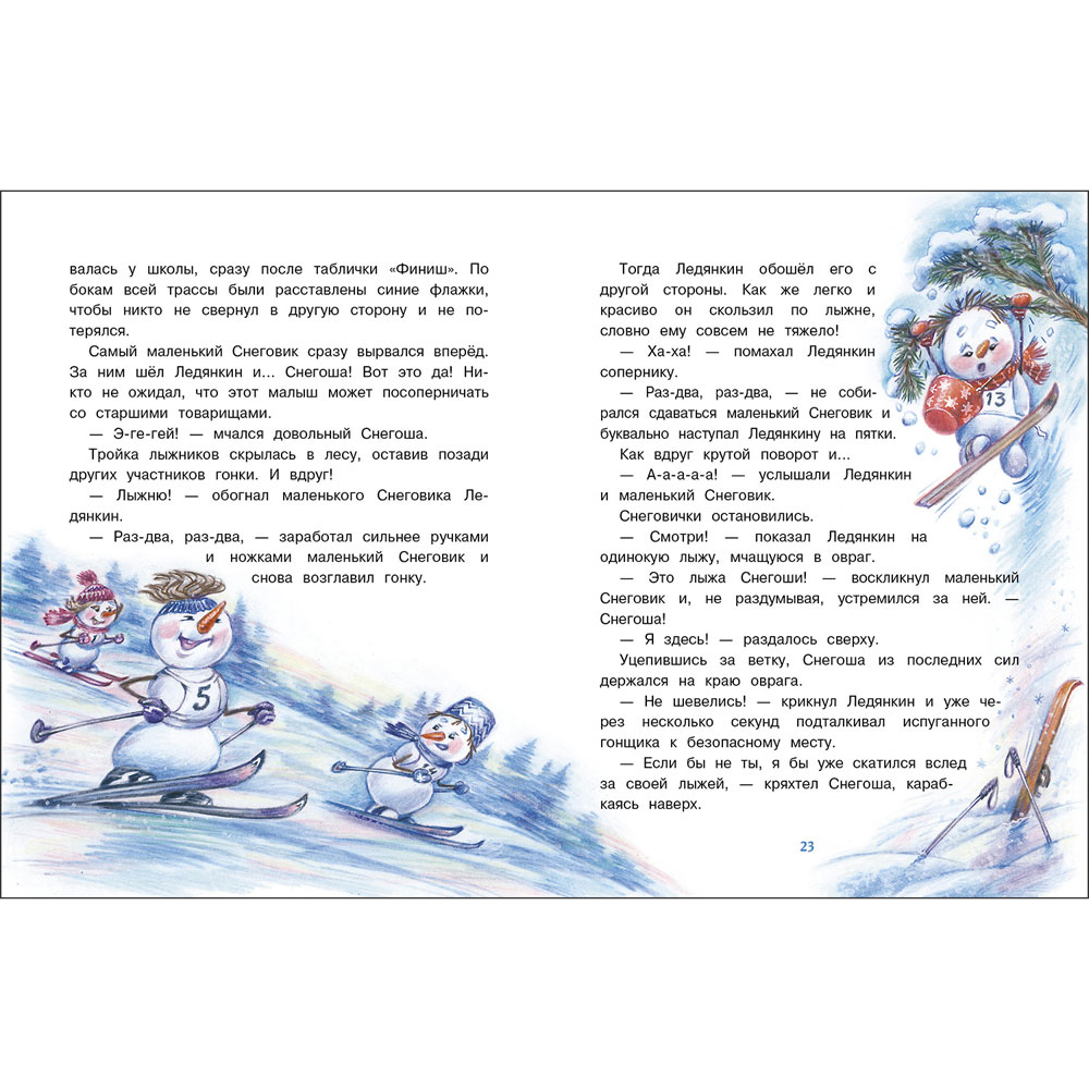 Новая книга Татьяны Коваль про маленького снеговика. Всем надо учиться. Даже снеговикам. Вот и наши давние знакомые – самый маленький Снеговик, Льдинка и Снегоша – ходят в школу. Они старательно пишут буквы и цифры, рисуют на снежных досках заостренными палочками, учатся играть на ледяных музыкальных инструментах, участвуют в лыжных соревнованиях и конечно готовятся встречать Новый год. Но, как и со всеми детьми, с ними постоянно случаются разные истории.